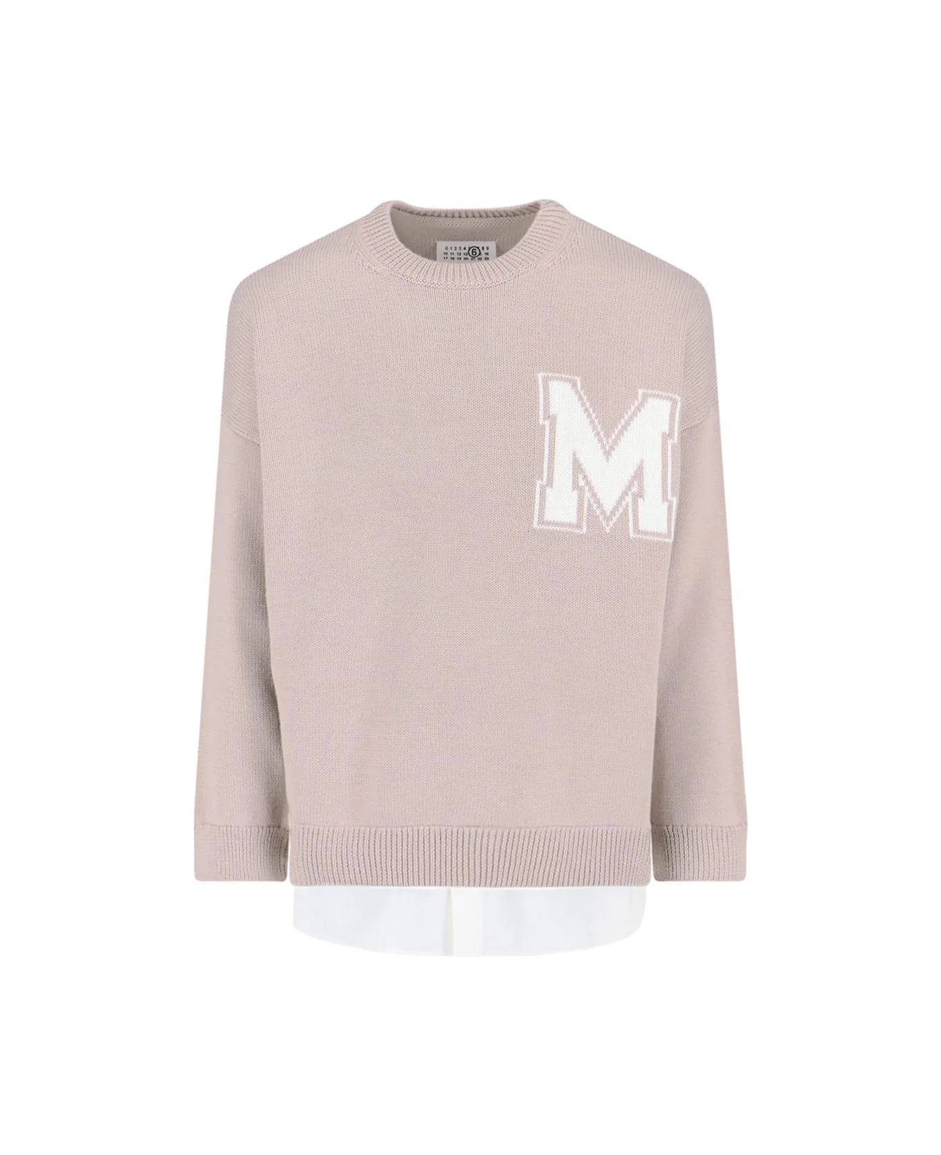 Maison Margiela MM6 logo sweater in beige virgin wool blend with crew neck, contrast logo on the front, iconic stitching at the back, ribbed trims, shirt on the hem. Composition: 50% Virgin Wool, 50% Acrylic Made in: Italy Color: Beige Size and fit: - Vestibilita regolare Model number: SH0HL0039M13206115