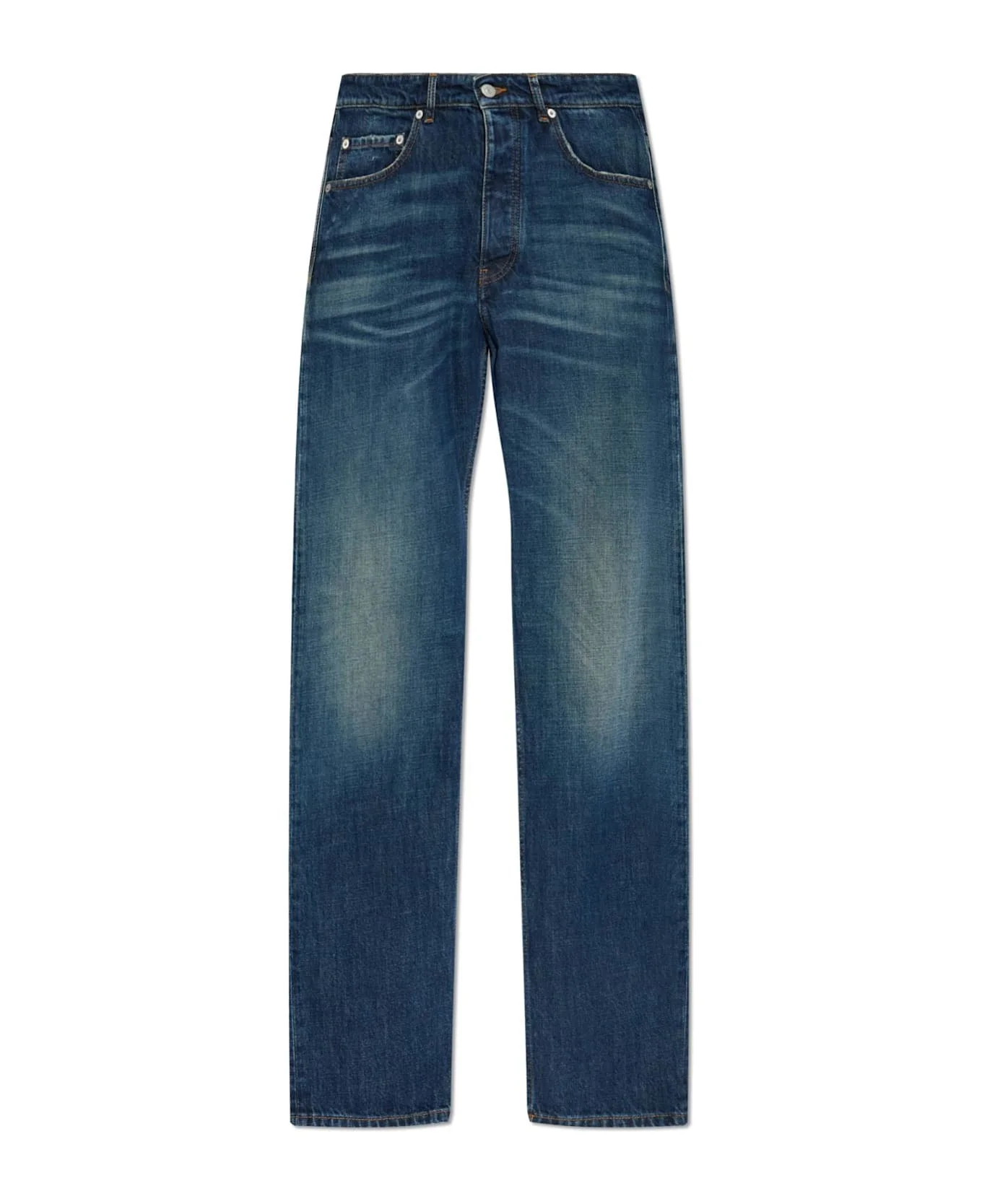 The Carrot Fit Jeans by MM6 Maison Margiela exude refined urban sophistication with a subtle nod to conceptual artistry. Crafted exclusively from rigid cotton denim, these jeans offer a structured silhouette broad through the thigh and gently tapering towards the ankle. The deep navy hue is enriched by softly faded accents at the thighs and knees, imparting an understated vintage allure. Signature details include classic five-pocket styling, expertly reinforced with metal rivets and a branded button closure, complemented by distinctive contrast stitching in bold orange. A genuine leather logo patch elevates the piece, marking its artisanal origin. Free from stretch, these jeans champion authenticity, durability, and timeless appeal. Why choose this product? Exquisite design inspired by avant-garde fashion heritage Meticulously constructed from premium non-stretch cotton denim Distinct carrot fit lends a modern edge to classic tailoring Iconic detailing, including artisan leather branding and contrast stitching Unparalleled durability and authentic vintage character Composition: 100% Cotton Made in: Italy Color: BLUE Model number: S30844SH2LA0037