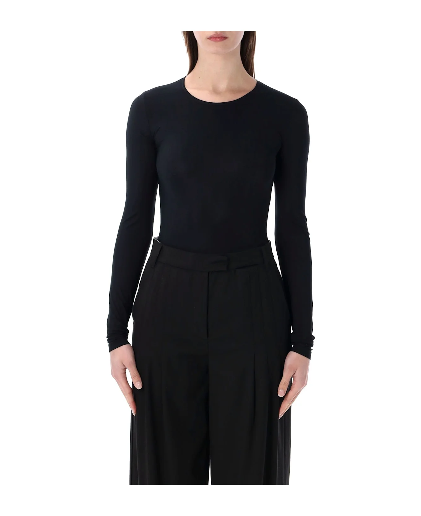 This Long-sleeved Bodysuit Is Crafted In Smooth Stretch Jersey With A Round Crew Neckline, Offering A Second-skin Fit. Subtle Seam Detailing Enhances Its Minimalist Design, While The Numeric Mm6 Artwork Printed Beneath The Signature White Stitch Line At The Back Adds An Iconic Touch. Long-sleeved Stretch Jersey Round Neckline Second-skin Fit Subtle Seam Detailingmm6 Numeric Artwork With White Stitch Line At Back Alessandra Is 1,75 M And Wears Size S Composition: 73% polyamide, 27% elastane Made in: Italy Color: BLACK Model number: S62NA0085S20518900