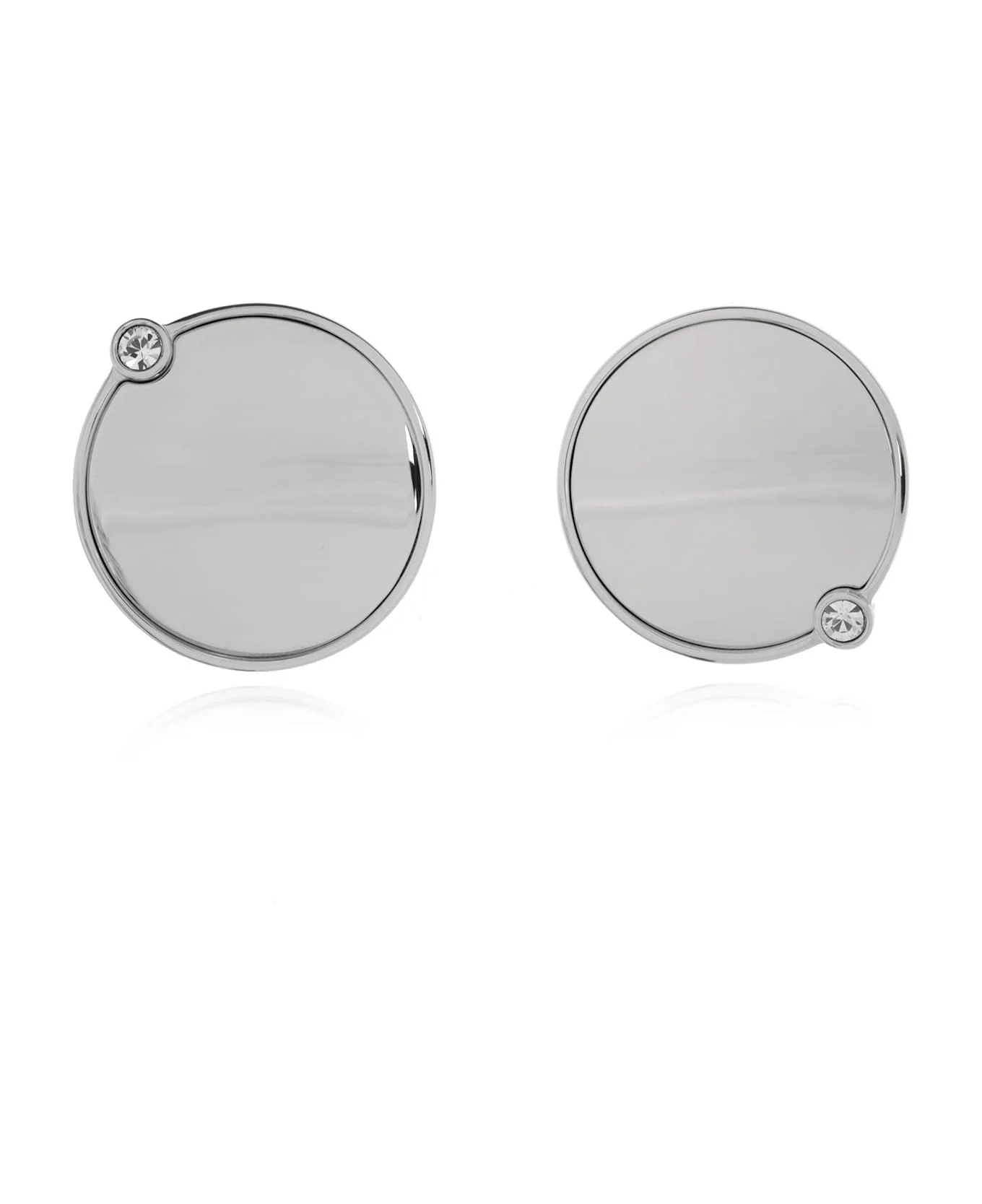 Embodying the distinctively avant-garde aesthetic of MM6 Maison Margiela, these round earrings offer a refined tribute to conceptual fashion. Crafted from lustrous metallic material with a polished, mirror-like silver finish, their minimalist silhouette is both modern and sophisticated. The smooth, uninterrupted form is accentuated by a single, precisely set crystal near the edge, adding a subtle touch of brilliance. The reverse side discreetly reveals a finely engraved designer logo and unique numbering, a testament to exceptional craftsmanship and exclusivity. These earrings transcend ordinary adornment, serving as a statement of understated elegance and artistic pedigree a perfect accessory for the discerning, style-forward woman. Why choose this product? Exclusive MM6 Maison Margiela engraving and logo. Minimalist, versatile round design with luxurious mirror-finish. Delicate crystal embellishment for subtle brilliance. Expertly crafted from premium materials for lasting elegance. Perfect for elevating any sophisticated wardrobe. Composition: 100% Brass 100% Brass Made in: Italy Color: Polished Palladio Model number: SM7VG0096P8605951