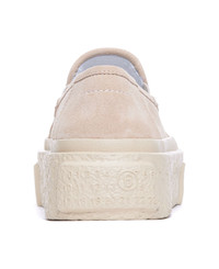 MM6 Maison Margiela pink slip on sneakers, suede upper, patch logo, round toe Composition: 100% Suede, Rubber Sole Made in: Italy Color: Pink Size and fit: - Plateau 4 cm Model number: S59WS0238P5246T2320