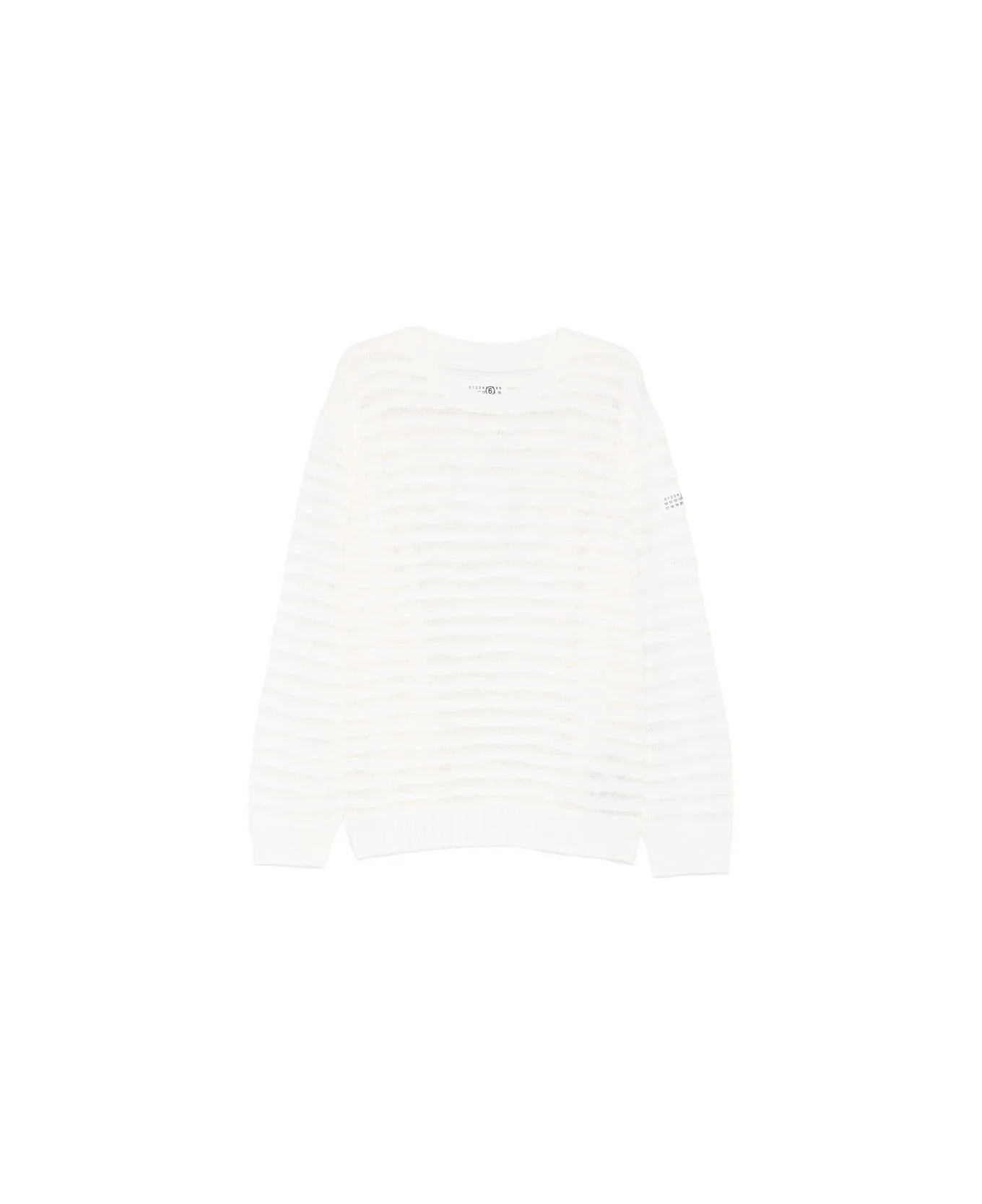 white striped knit construction crew neck long sleeves logo patch Made in: Romania Color: WHITE Model number: M13208SH0HL0036