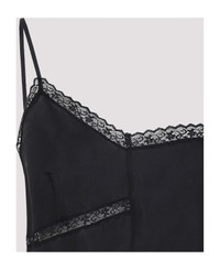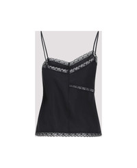 MM6 Maison Margiela Black Silk Top. Pure black silk top, thin adjustable straps, asymmetric neck with tonal lace details, tonal stitching, sleeveless, straight hem, laces details on the front and on the hem. Made in: Italy Color: Black Model number: S52NC0344M35244900