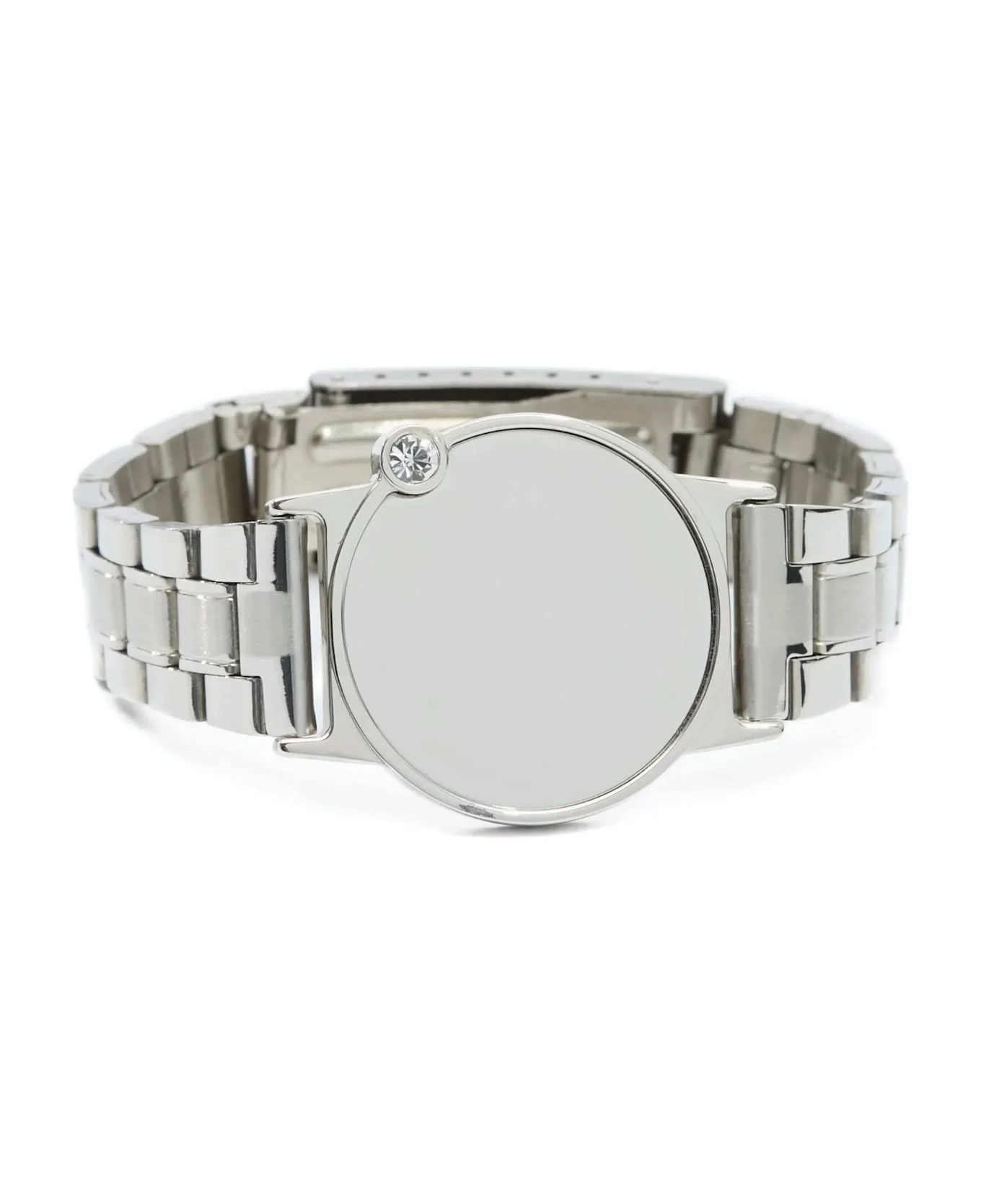 Bracelet with silver brass links, trompe l'oeil watch construction with mirrored plaque and crystal applique, and box closure. Composition: 100% brass Made in: Italy Color: Polished Palladio Size and fit: - true to size fit Model number: SM7UY0101P8605951
