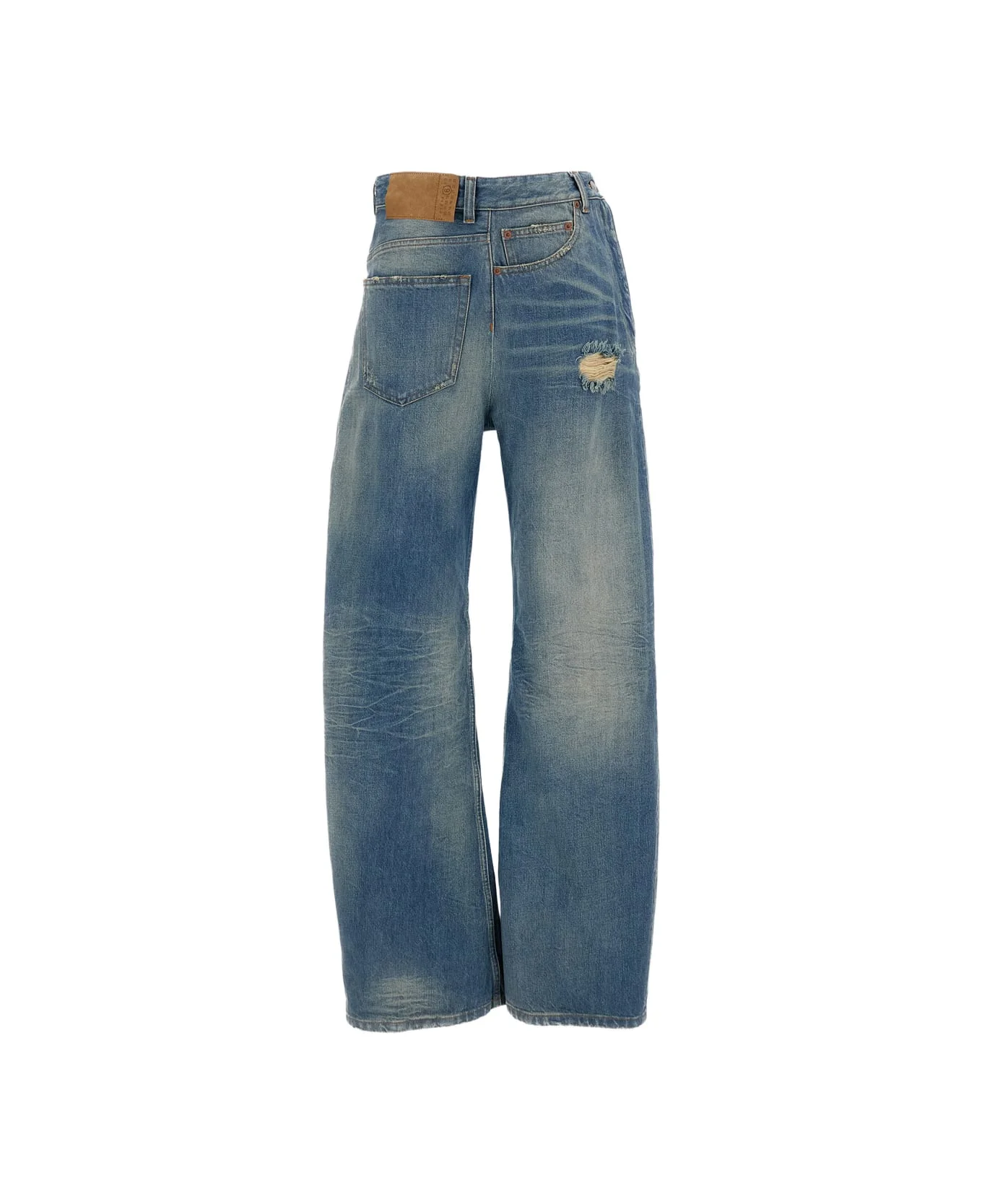 Wide-leg distressed-style jeans Classic 5-pocket design Side closure with tack button and zip Applied pockets on front and back Patch with iconic numeric logo on the front Color: blue Composition: 100% Cotton Made in: Romania Color: Blue Model number: S52LA0243M30016961