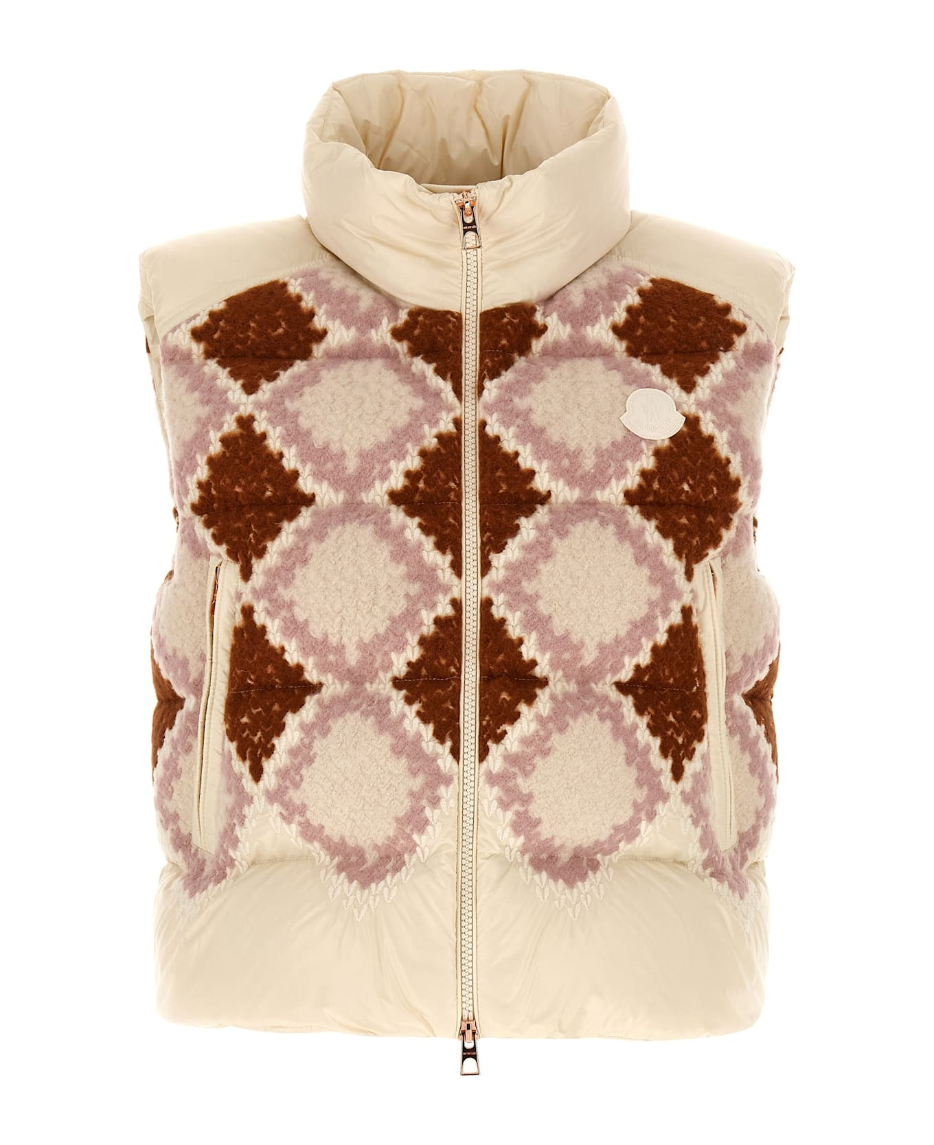 'Armathia' vest in quilted technical fabric with goose down padding with wool embroidery on the front and back, crop model, standing collar, zip closure and front logo patch, pockets, drawstring on the hem. Composition: 100% polyamide Made in: Italy Color: Multicolor Size and fit: - true to size fit Model number: K20931A00113598T1F25