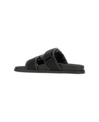 Black Leather And Fabric Sandals