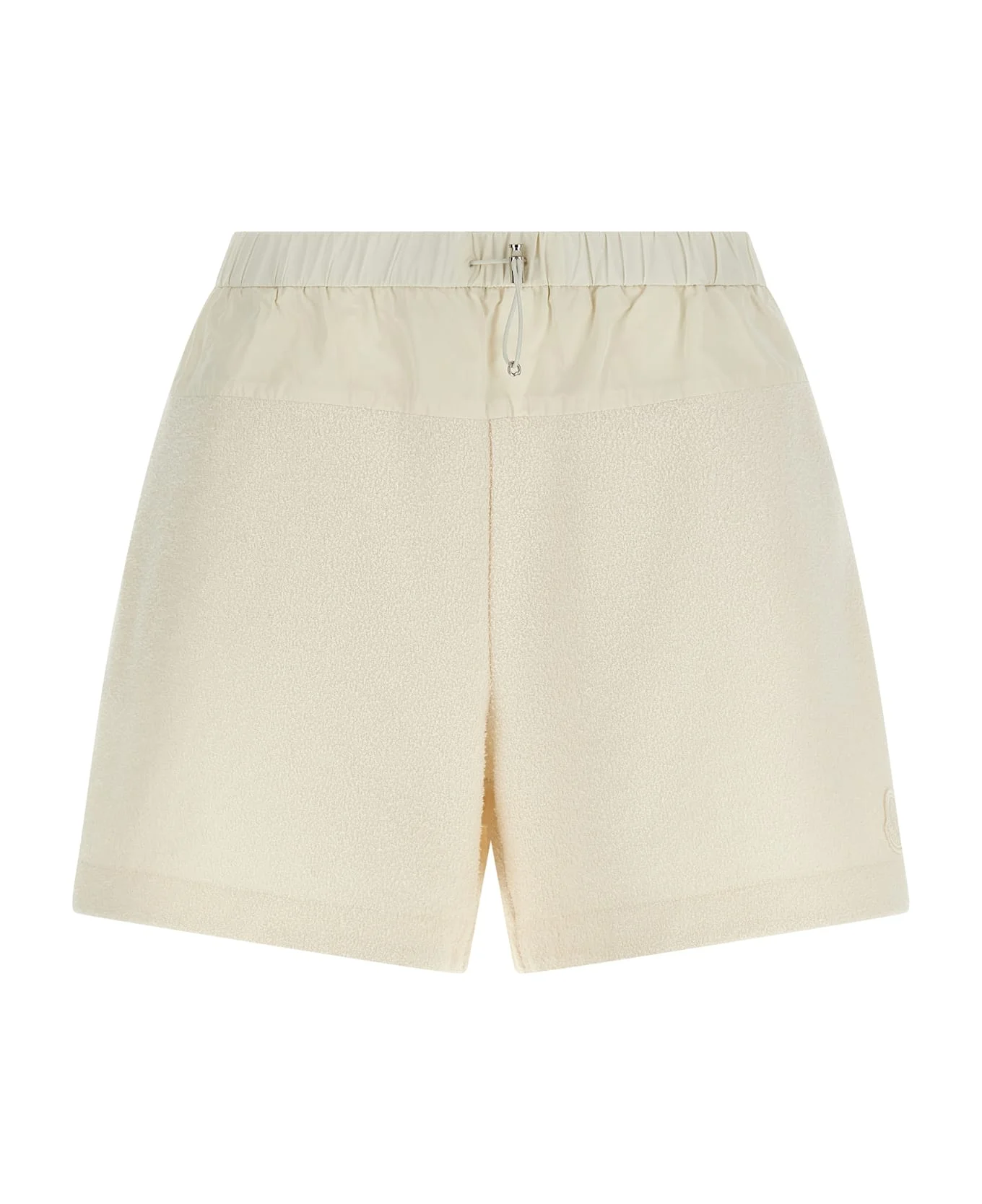 Lightweight boucle fabric shorts, tone-on-tone nylon insert at the waist with elastic and drawstring, pockets, tone-on-tone grosgrain logo patch on the front. Composition: 100% polyester Made in: Moldova Color: White Size and fit: - true to size fit Model number: L10938H0001289BDU050