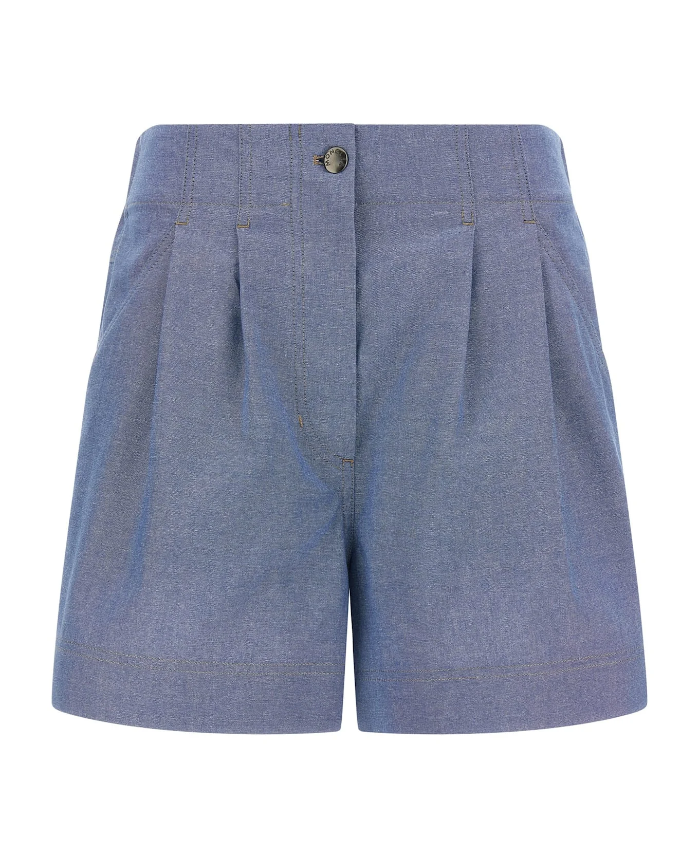 Chambray cotton shorts, breathable micromesh lining, contrast stitching, elastic waistband at the back, front zip and snap button closure, pleats, wide leg, pockets, back logo patch. Composition: 100% cotton Made in: Romania Color: Light Blue Size and fit: - true to size fit Model number: L10982B00001596RS715