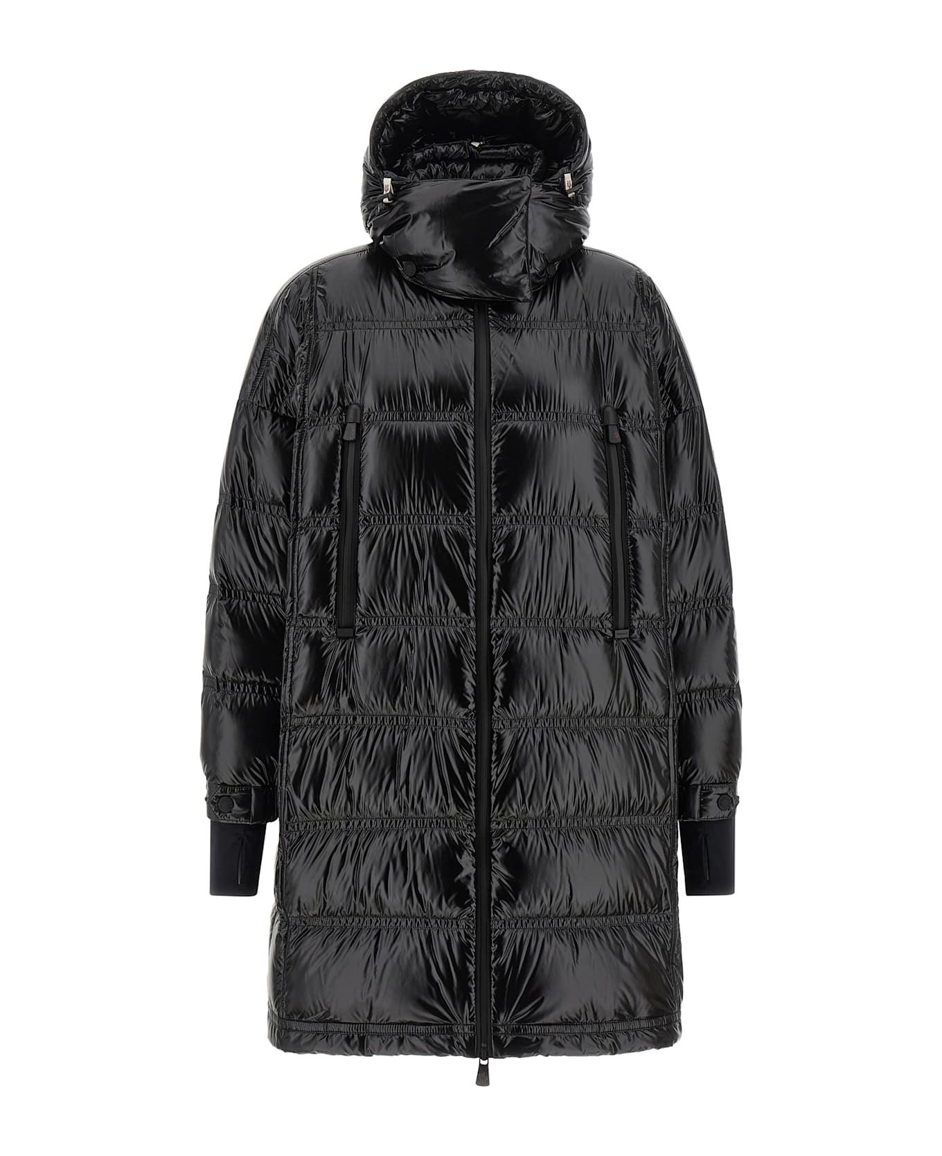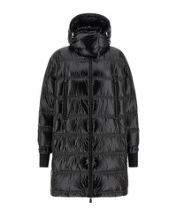 Long 'Rochelairs' down jacket in ultra-light water-repellent quilted nylon laque with goose down padding, adjustable and removable hood, high neck, YKK® AquaGuard® Highly Water-Resistant 2-way zip closure on the front, pockets, long sleeves with elastic cuffs, windproof gaiter, dropped shoulder and logo patch applique, drawstring on the hem. Composition: 100% polyamide Made in: Romania Color: Black Size and fit: - oversized fit Model number: K20981C000035981E999