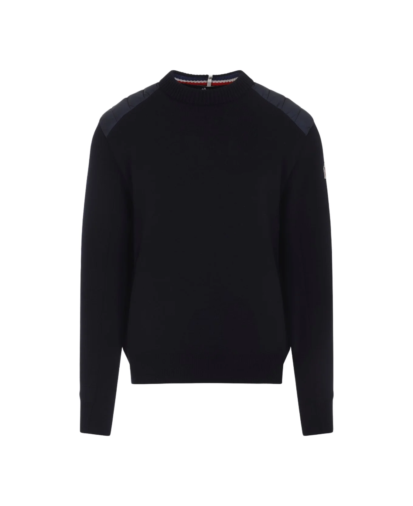 Moncler Grenoble Dark Blue Virgin Wool Pullover. Crafted from dark blue virgin wool, round neckline, padded nylon insert at the shoulders, long sleeves, logo patch detail, ribbed edges. Made in: Moldova Color: Dark Blue Model number: K20979C00004M1122771