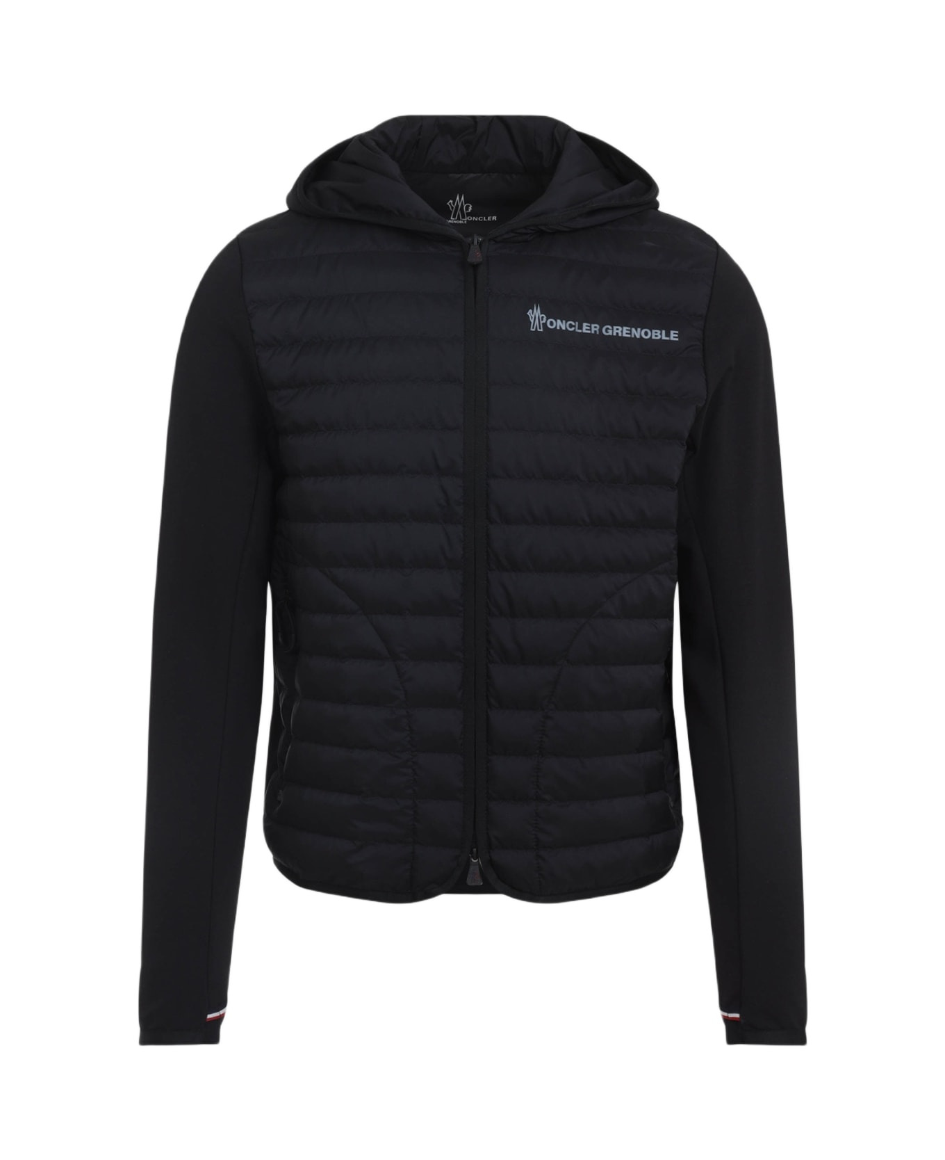 Moncler Grenoble Black Padded Zip-Up Cardigan. Black cotton blend, tonal nylon hood, shoulders and front. Down filling and zip closure, zipped pockets, warp-knitted Sensitive Fabric wrist gaiters, an elastic hem and printed logo on chest. Made in: Moldova Color: Black Model number: K10978G0000589AW0999