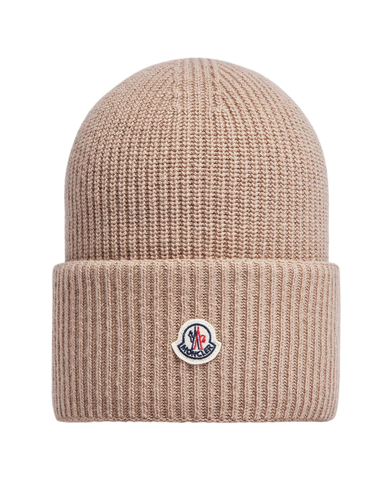Ribbed wool cap. Logo detail. Color: beige Composition: 100% Wool Made in: Italy Color: Beige Model number: 3B00032M1241513