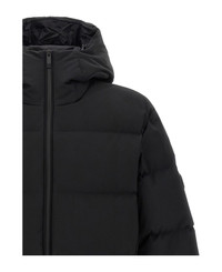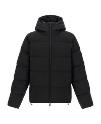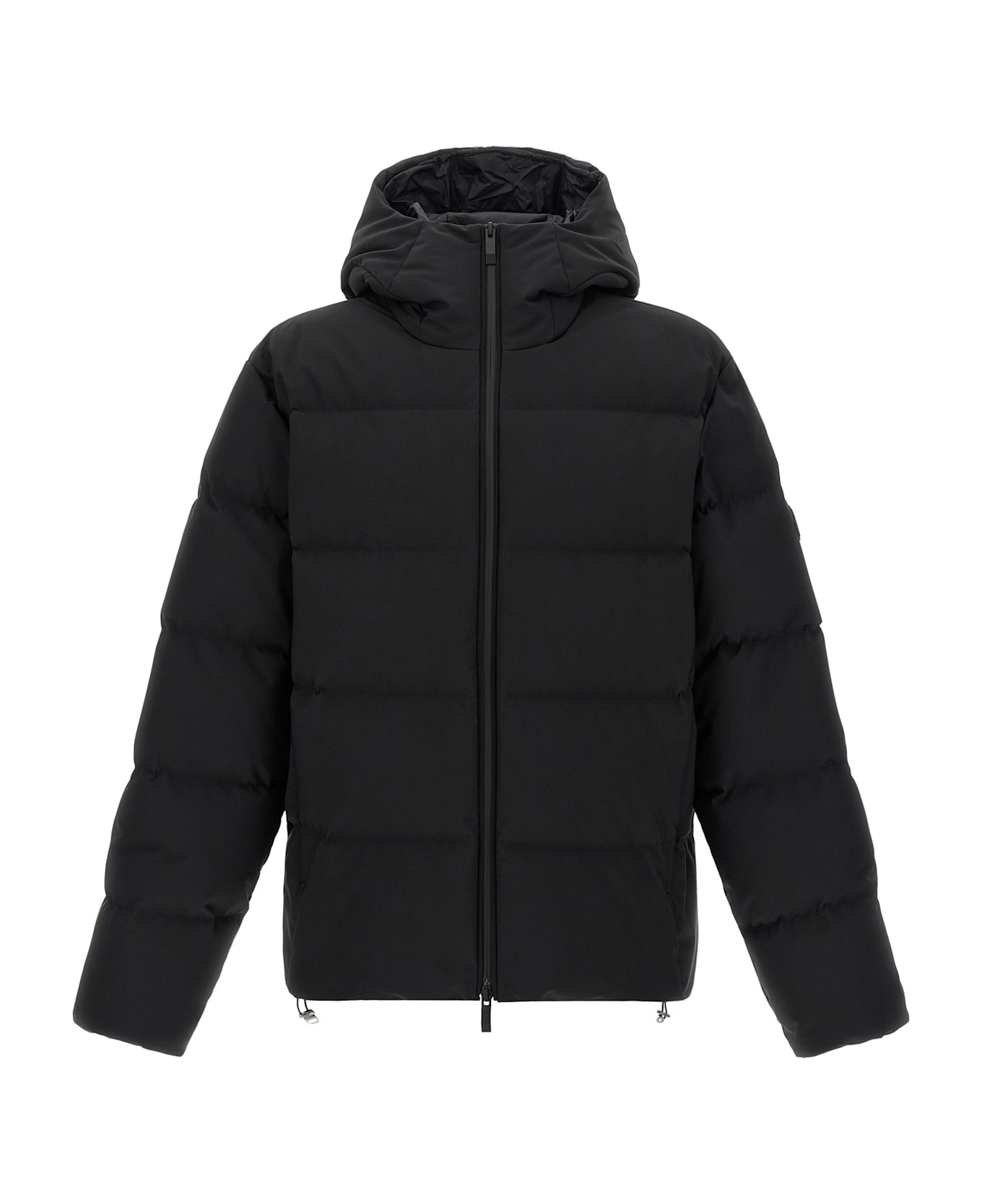 'Languedoc' down jacket in matt technical fabric with quilted water-repellent treatment and goose down padding, adjustable hood with 3D logo, high neck, front zip closure, pockets, long sleeves with elastic cuffs and tone-on-tone silicone logo patch applique, drawstring on the hem. Composition: 100% polyester Made in: Romania Color: Black Size and fit: - true to size fit Model number: K20911A00234598H2999