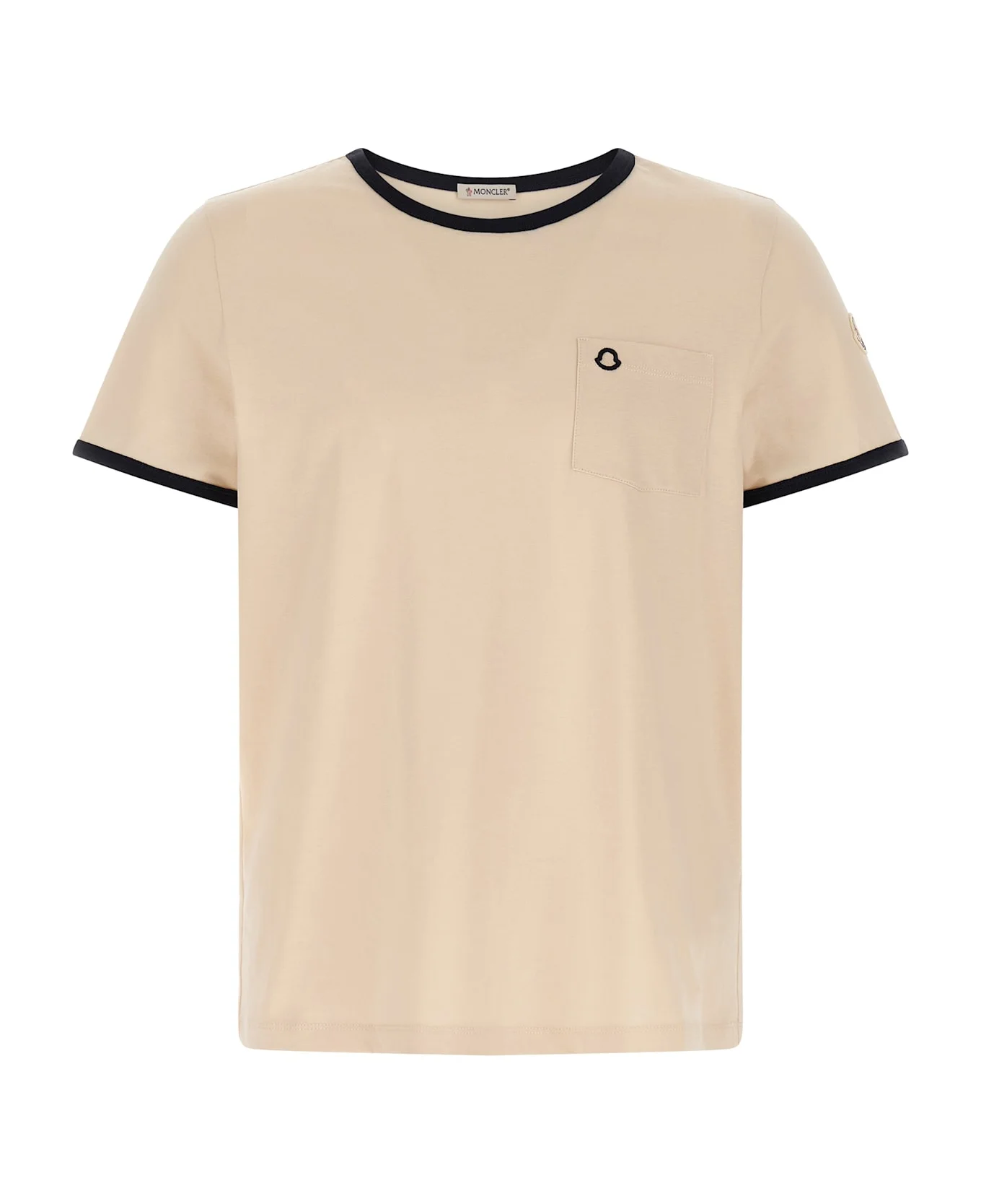 Cotton T-shirt with contrasting details, pocket with logo embroidery, crew neck, short sleeves with felt logo patch applique. Composition: 100% cotton Made in: Turkey Color: Beige Size and fit: - true to size fit Model number: L10938C0001989AUOF07