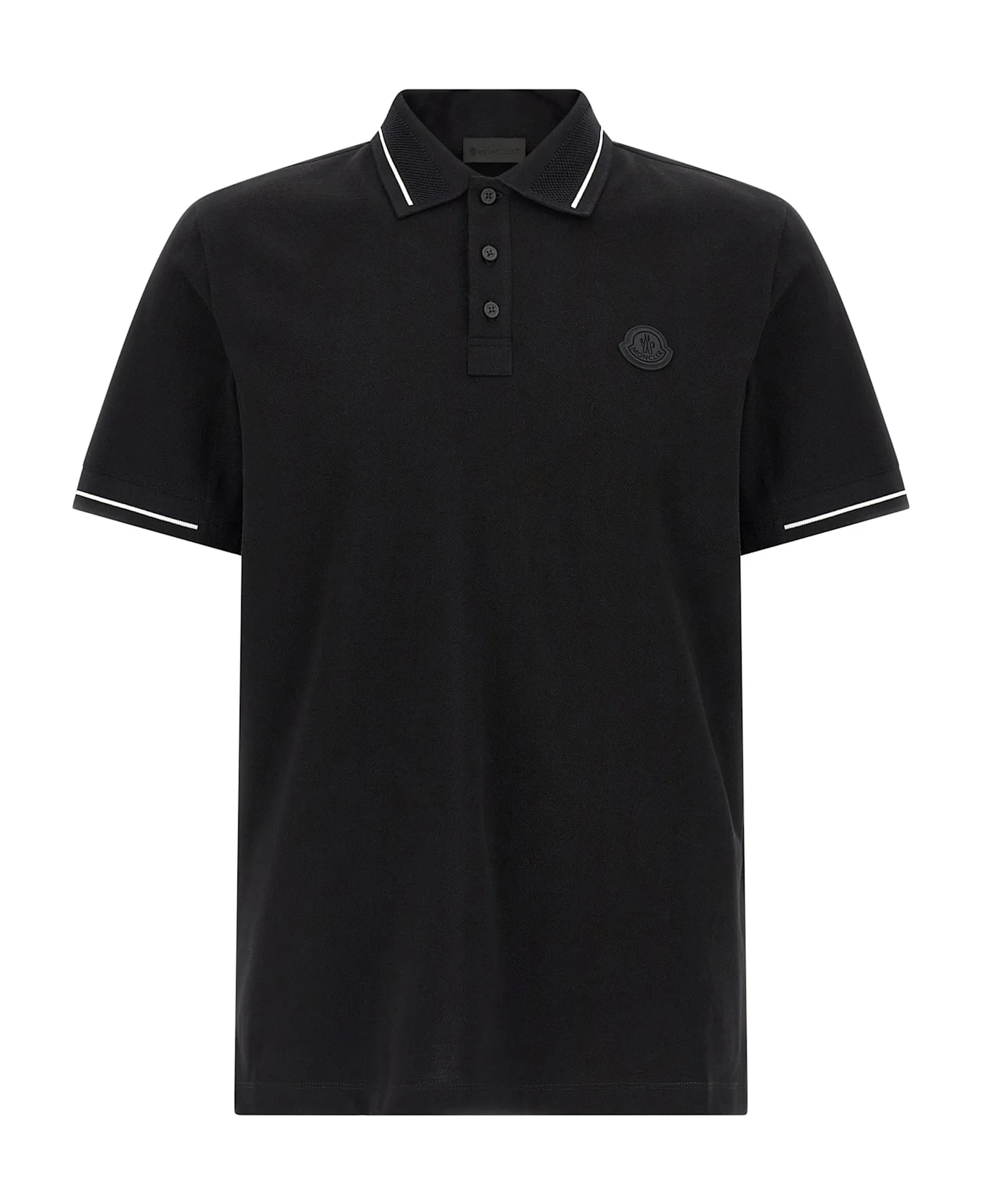 Cotton piquet polo shirt with contrasting details, tone-on-tone silicone logo patch on the front, collar and buttons, short sleeves with cuffs, side slits. Composition: 100% cotton Made in: Turkey Color: Black Size and fit: - true to size fit Model number: L10918A0001389A16999