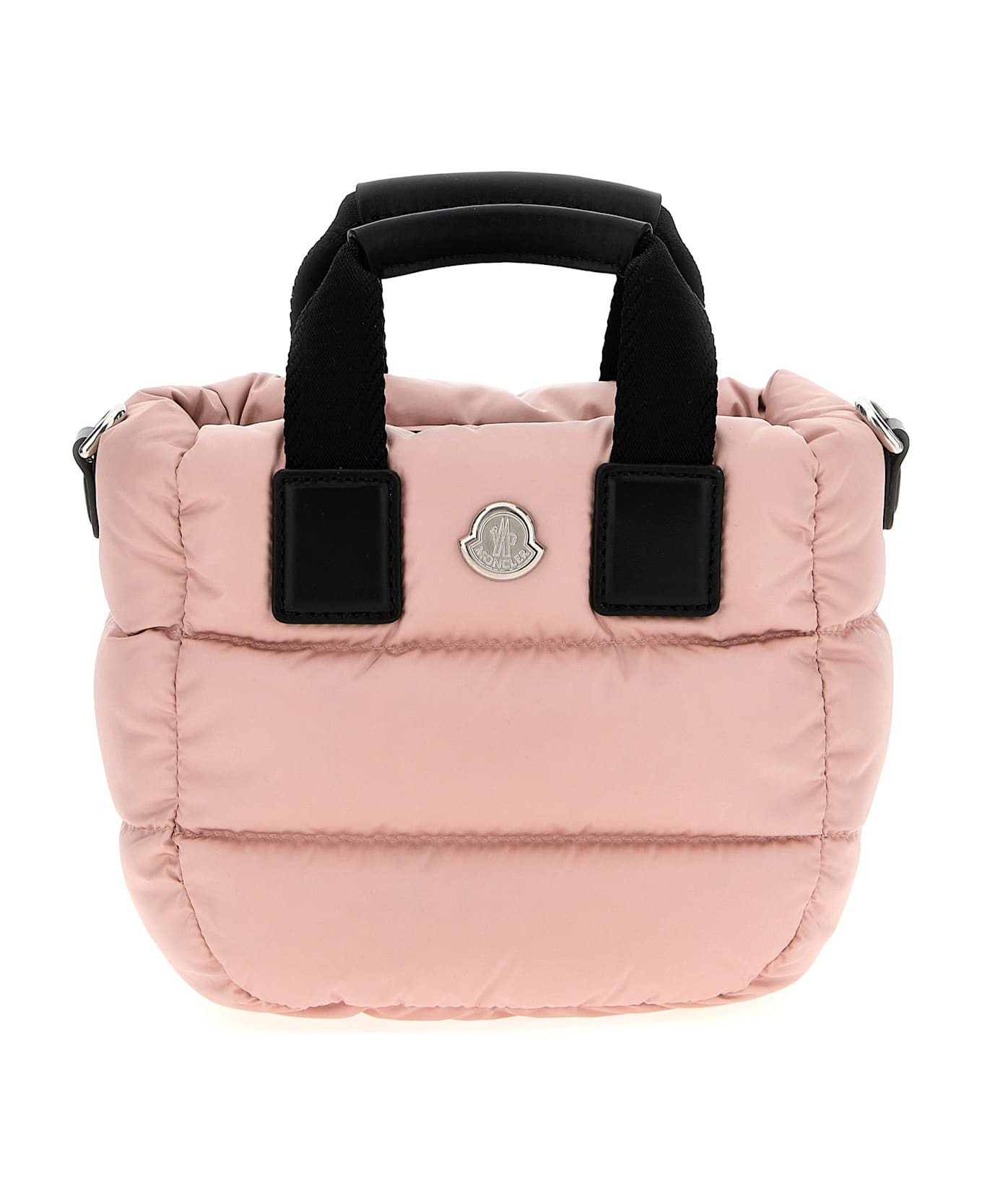 'Micro Caradoc' water-repellent padded quilted nylon handbag, front silver metal logo patch, cotton lining, double fixed handle with leather handle, top zip closure, adjustable and removable leather shoulder strap. Composition: 100% polyamide Made in: Italy Color: Pink Size and fit: - W 16.5 x H 16 x D 9.5 cm Model number: K209B5L00004M627550O