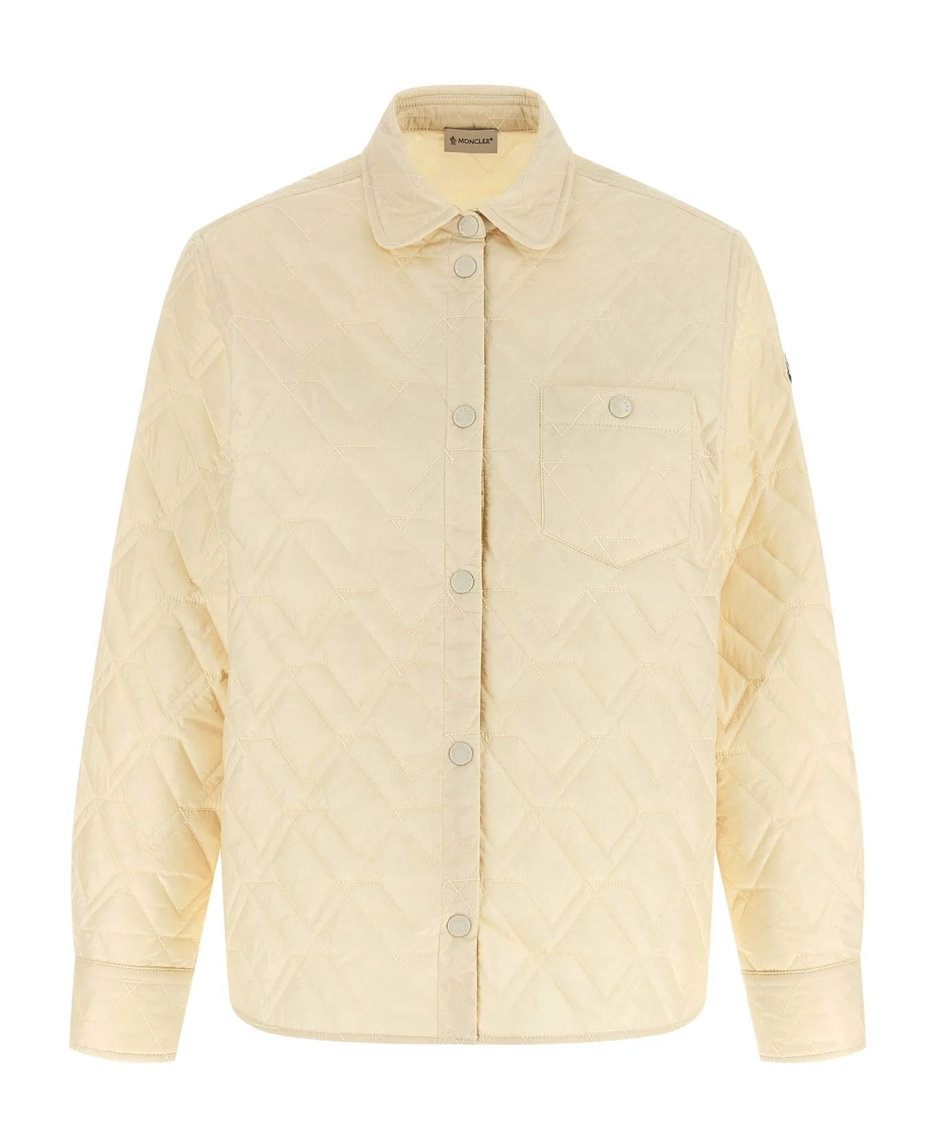 Quilted tech fabric overshirt, front snap button closure, breast pocket, long cuffed sleeves and felt logo patch. Composition: 100% polyamide Made in: Romania Color: Beige Size and fit: - true to size fit Model number: L10932F00001788UY052