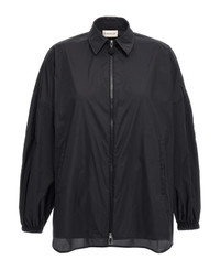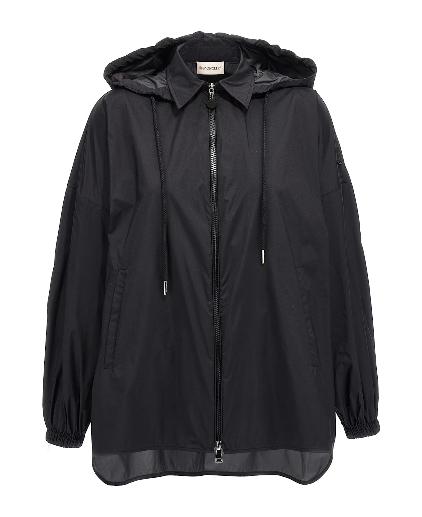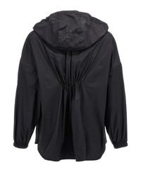Windbreaker in tech fabric without lining, back ruffle detail, removable hooded shirt collar, front zip closure, pockets, long sleeves with dropped shoulders, elastic cuffs and tone-on-tone logo patch applique, side slits, and asymmetric hem. Composition: 100% polyamide Made in: Hungary Color: Black Size and fit: - Comfort fit Model number: K10932F00013596TM999