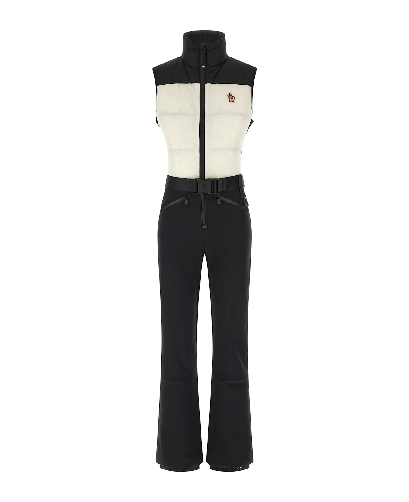 Ski suit in water-repellent and breathable technical fabric with goose feather padded on the front, fleece lining, high neck, logo patch and front zip closure, pockets, flared leg bottom with zip, tone-on-tone side reinforcement and inner gaiter, removable belt. Composition: 100% polyamide Made in: Romania Size and fit: - true to size fit Model number: 2G000165983S