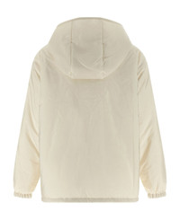 Technical nylon sweatshirt with goose feather padding, hood, front zip closure, teddy-effect fabric pockets, long sleeves with elastic cuffs and felt logo patch, drawstring on the hem. Composition: 100% polyamide Made in: Hungary Color: White Size and fit: - true to size fit Model number: K20932F00027539ZD04A