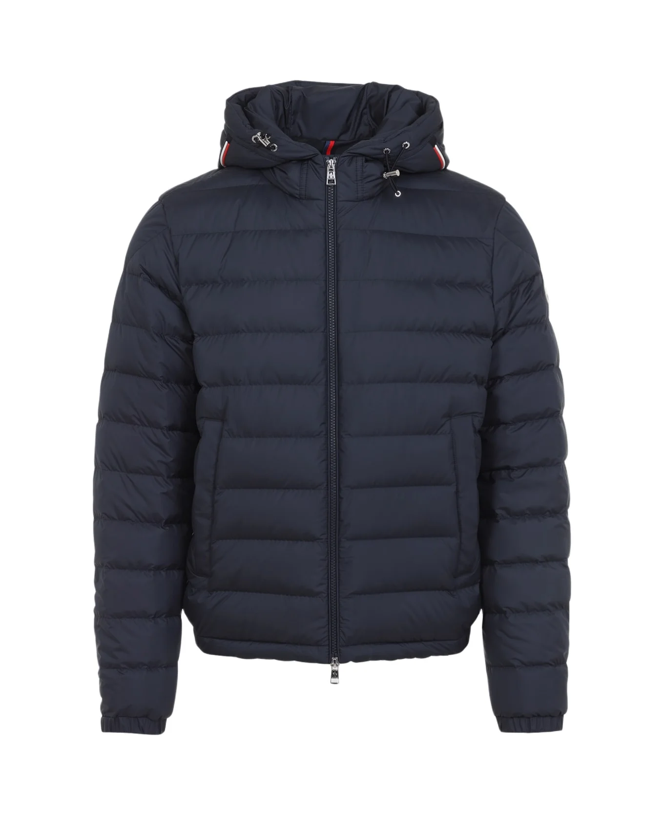 Moncler Blue Vermeille Jacket. Crafted in polyester fabric. Tonal hood, front tonal drawstring details, front zipped fastening, side pockets, long sleeves, patch logo on the right sleeve, straight hem, padded design. Blue, white and red stripes on the side of the hood. Made in: Armenia Color: Blue Model number: L10911A00006597X2779