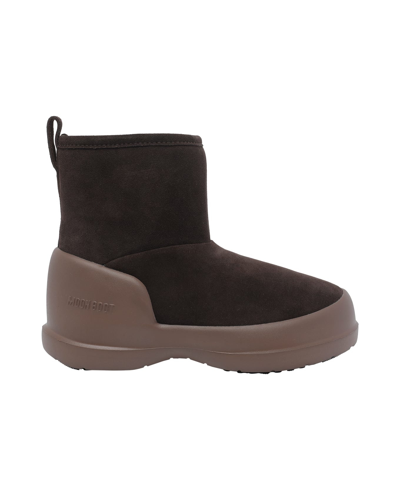 Moon Boot Mezzaluna mid booties, round toe, slip on, suede upper, rubber sole Composition: 100% Suede Leather/rubber Sole Made in: China Color: Brown Size and fit: - W Moon Boot  x H x D cm handle size Model number: 2500060M010