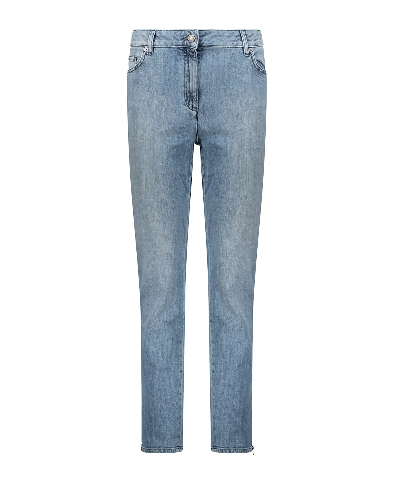 Metal buttons and rivets with engraved logo zipped ankle cuffs 98% cotton, 2% elastane Composition: 98% % Cotton, 2% % Elastane Made in: Italy Color: Denim Model number: T032454310281