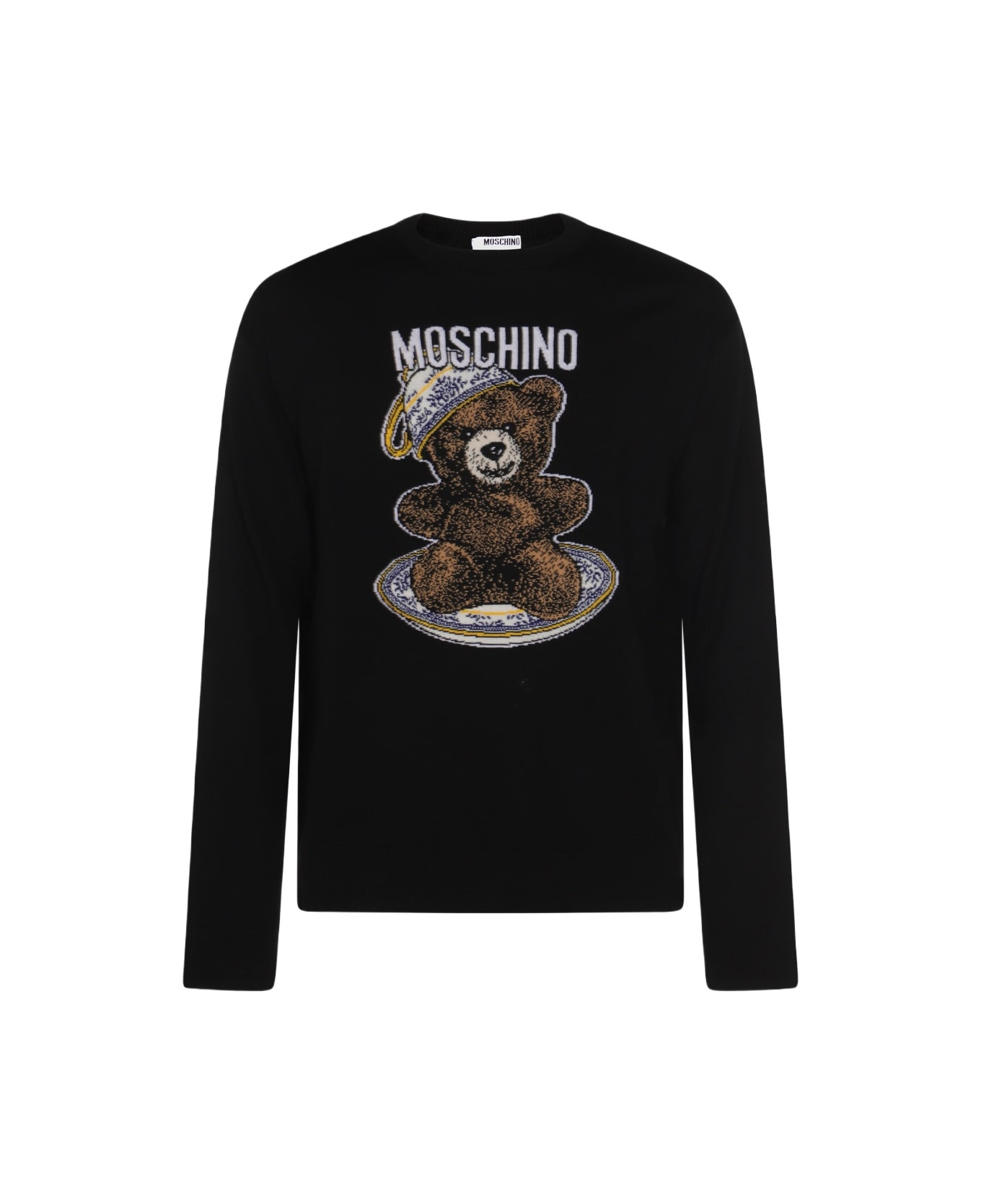 Black wool knitwear from Moschino featuring round collar, long sleeves, print and regular vestibility. Composition: _, 100% Virgin Wool Made in: Italy Color: Black Model number: 252ZZ092952002555