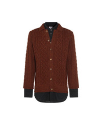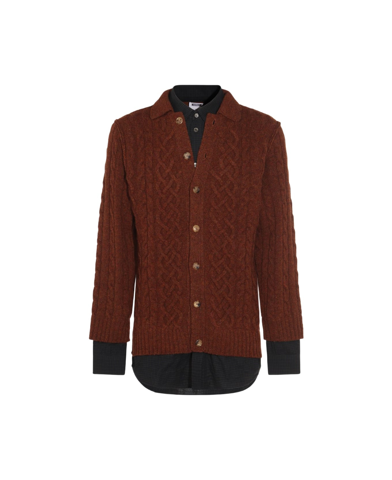 Brown wool knitwear from Moschino featuring classic collar, long sleeves, frontal buttons fastening, knitted motif and regular vestibility. Composition: _, 100% Virgin Wool Made in: Italy Color: Brown Model number: 252ZZ091152030108