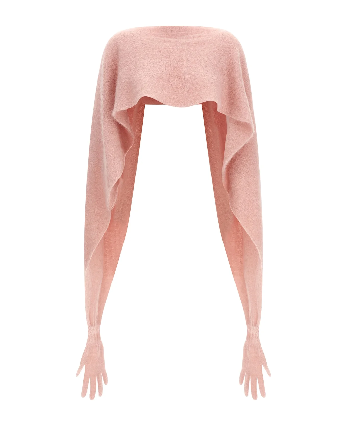 Gauze mohair blend cape with gloves. Composition: 35% mohair wool 35% alpaca wool 30% polyamide Made in: Italy Color: Pink Size and fit: - One size Model number: A338055060168