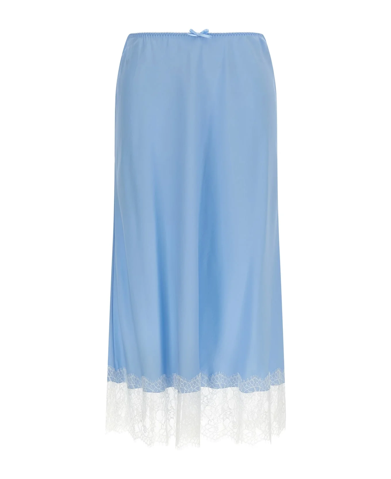 Midi skirt in silk twill, elastic waistband, flared silhouette, contrasting lace insert on the hem. Composition: 74% acetate, 26% silk Made in: Hungary Color: Light Blue Size and fit: - true to size fit Model number: A012505450304