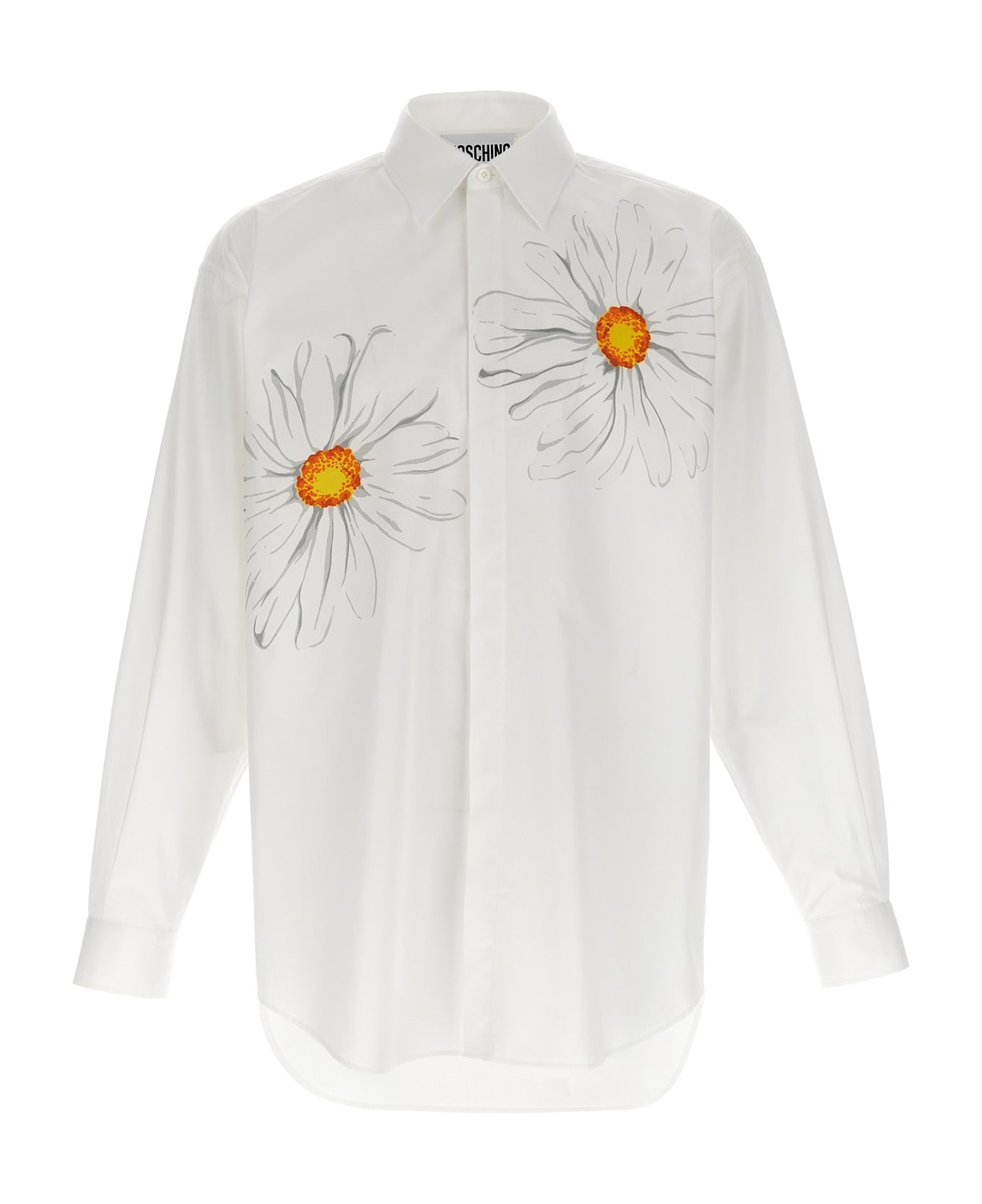 Cotton poplin shirt with front 'Margherite' print, front closure with covered buttons, long sleeves with cuffs. Composition: 100% cotton Made in: Italy Color: White Size and fit: - True to size fit Size collar Model number: A022002351001
