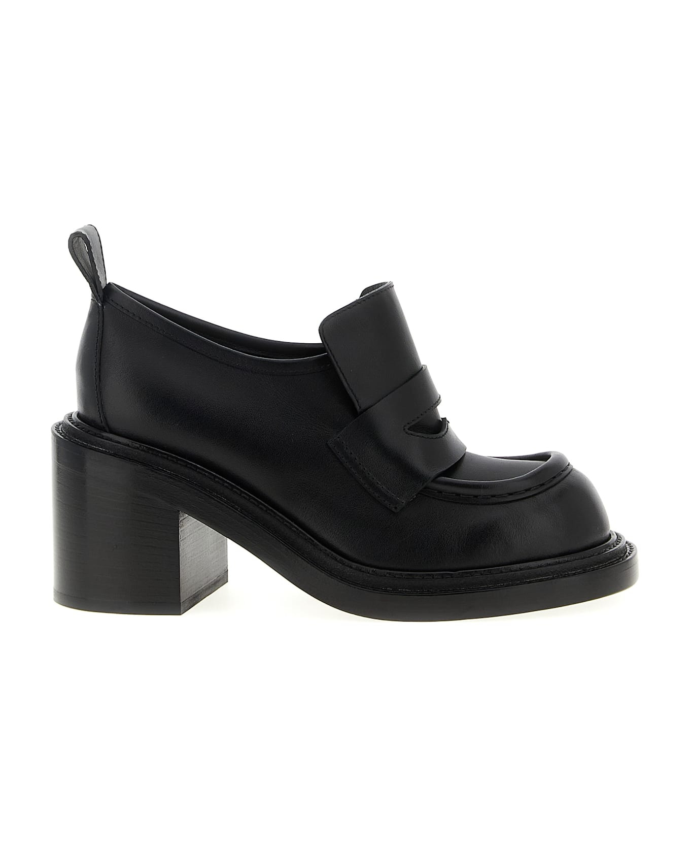 'Olivia' loafers in brushed calfskin, college model, two-layer construction with double welt and geometric heel. Composition: 100% leather Made in: Italy Color: Black Size and fit: - EU WOMAN - Heel: 9 cm Model number: MA10728C1NMF0000