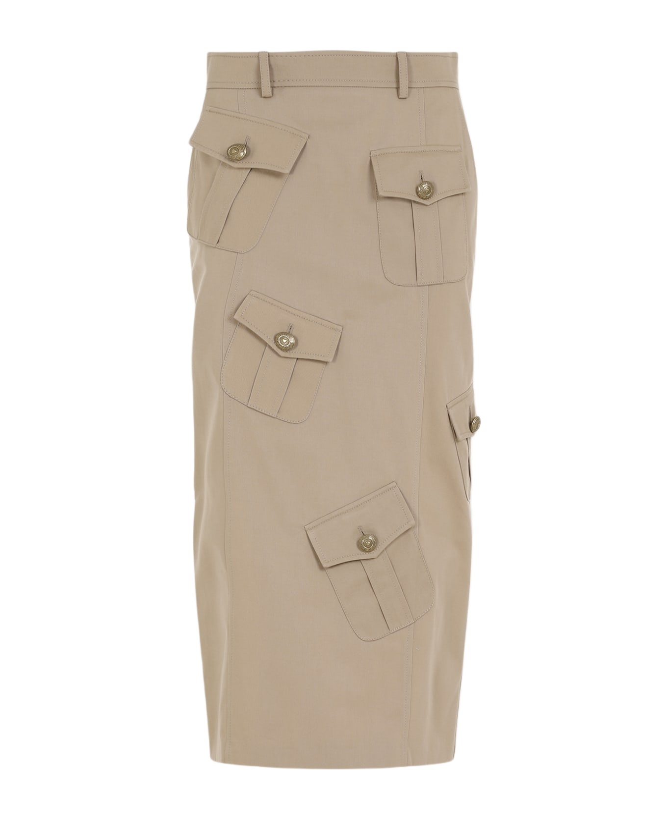 Moschino Beige Cotton Pencil Skirt. Crafted in cotton and wool blend. Belt loops, back zipped fastening, side pockets, front and back flap buttoned pockets, midi-length, pencil skirt design, straight hem. Made in: Italy Color: Beige Model number: 242D011554200081