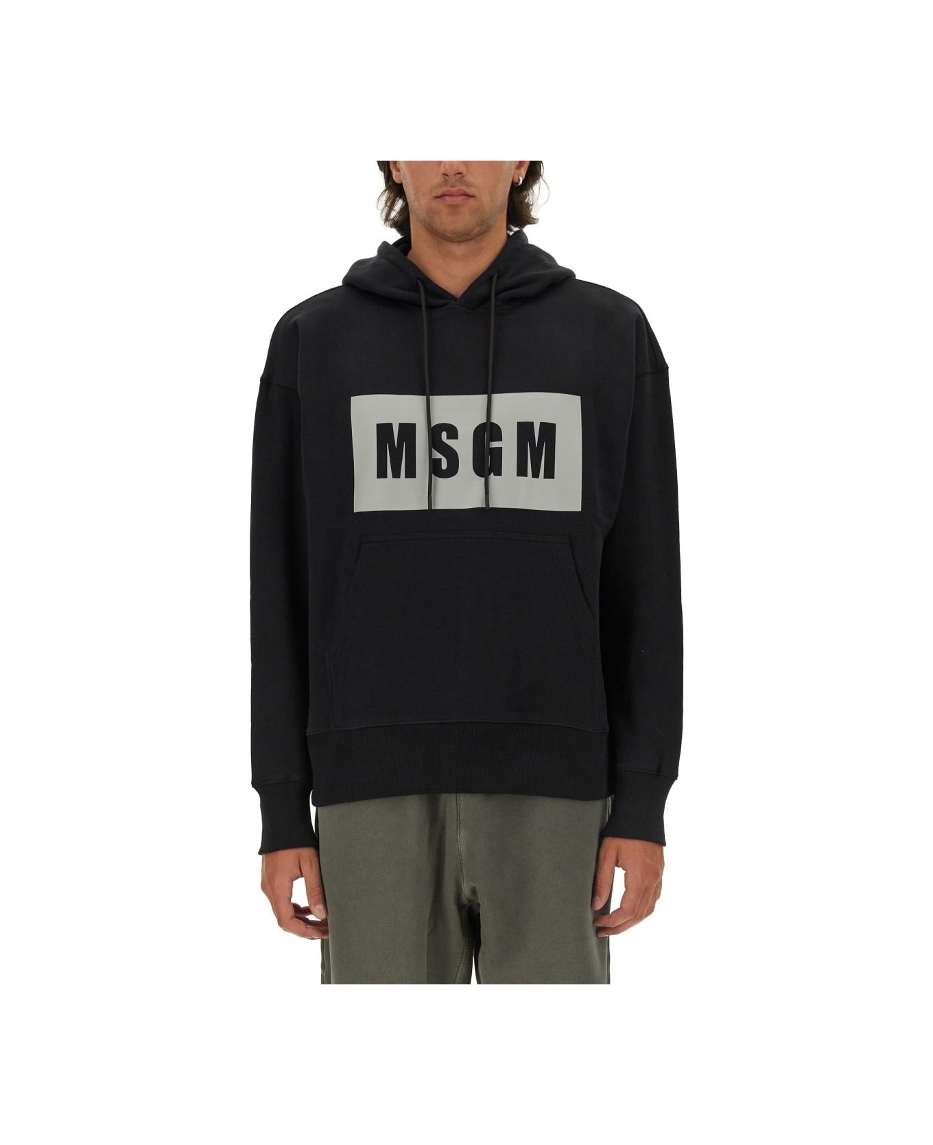 Black cotton sweatshirt with graphic box logo