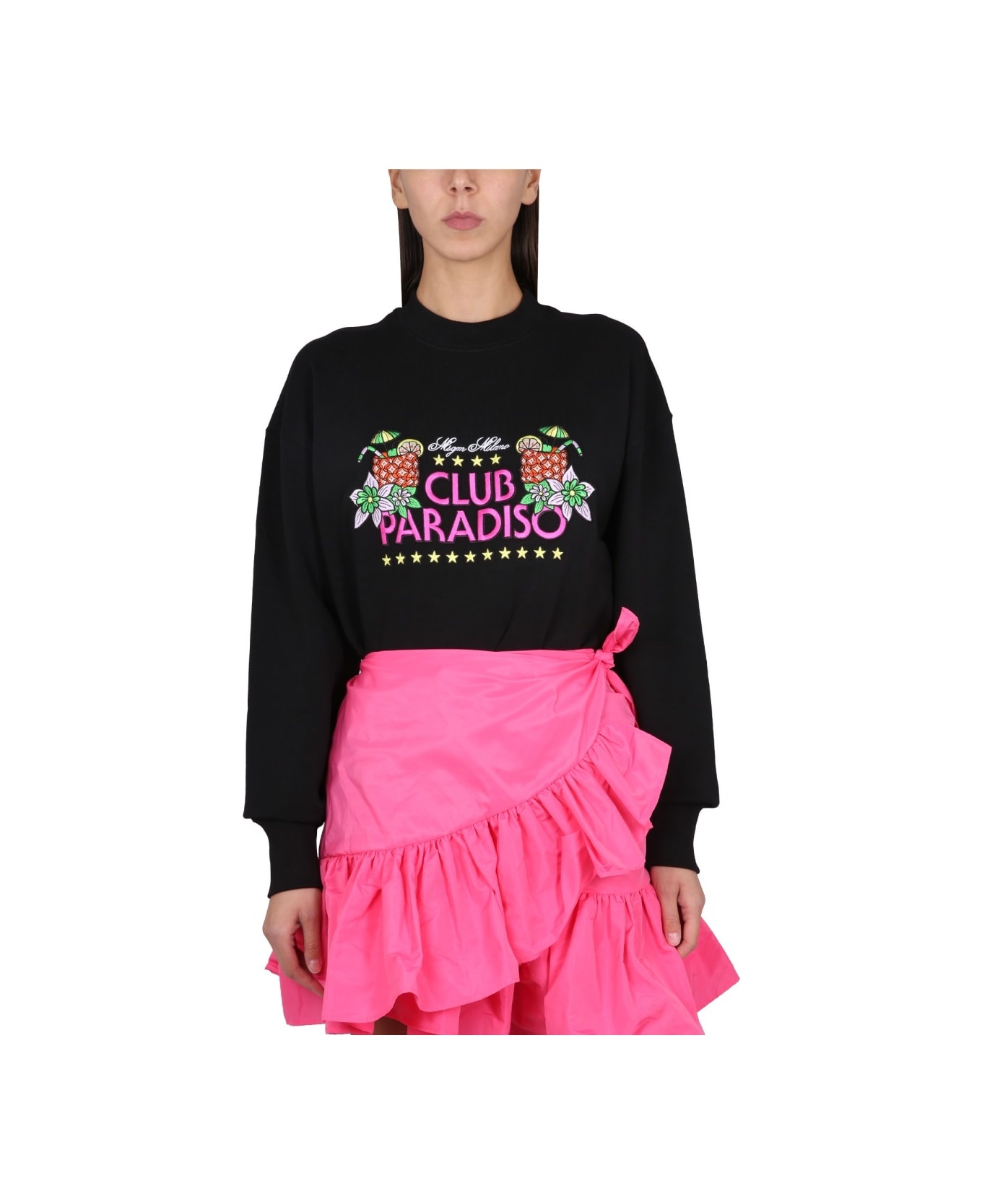 Solid color cotton crewneck sweatshirt with "club paradiso" graphic
