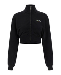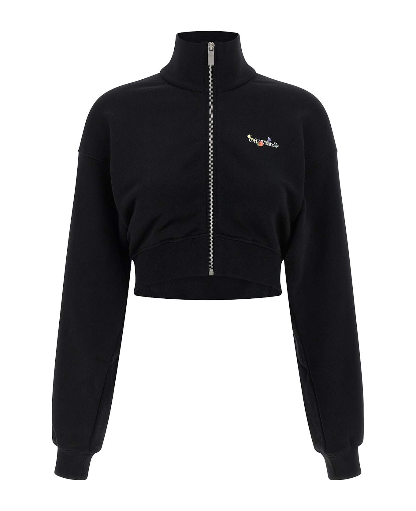 Brushed cotton sweatshirt with 'Arrow Glass Flower' print on the front and back, crop model, high neck, front zip closure, pockets, long sleeves with cuffs and dropped shoulders. Composition: 100% cotton Made in: Portugal Color: Black Size and fit: - oversized fit Model number: OWBE006F25FLE00210011001