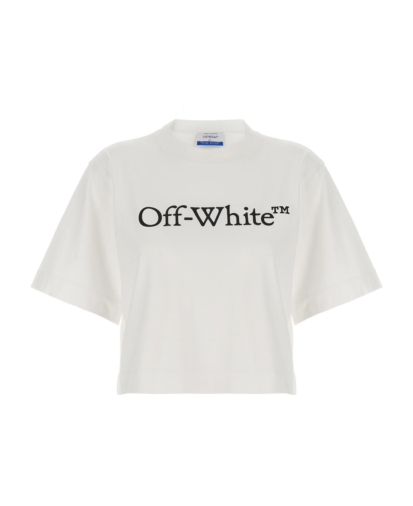Cotton cropped crew neck t-shirt with slightly loose fit, contrast front 'Big logo' print. Composition: 100% cotton Made in: Portugal Color: White Size and fit: - True to size fit Model number: OWAA090C99JER00401100110