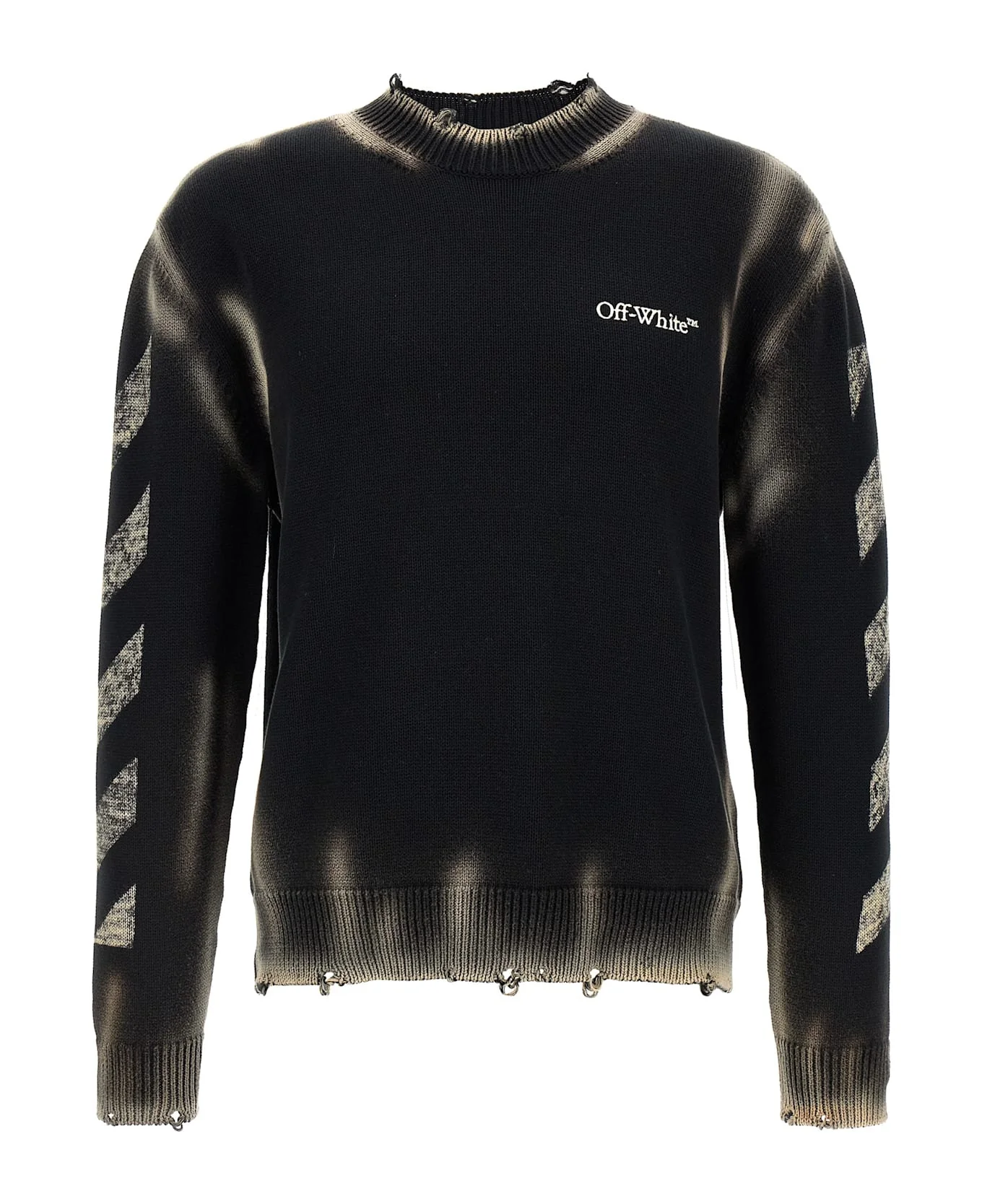 Diag Arr Corrosion' sweater in used-effect knitted cotton with gradient effects and inlays, front logo embroidery, crew neck, long sleeves with cuffs and dropped shoulders. Composition: 100% cotton Made in: Italy Color: Black Size and fit: - Comfort fit Model number: OMHE20US26KNI00300010001