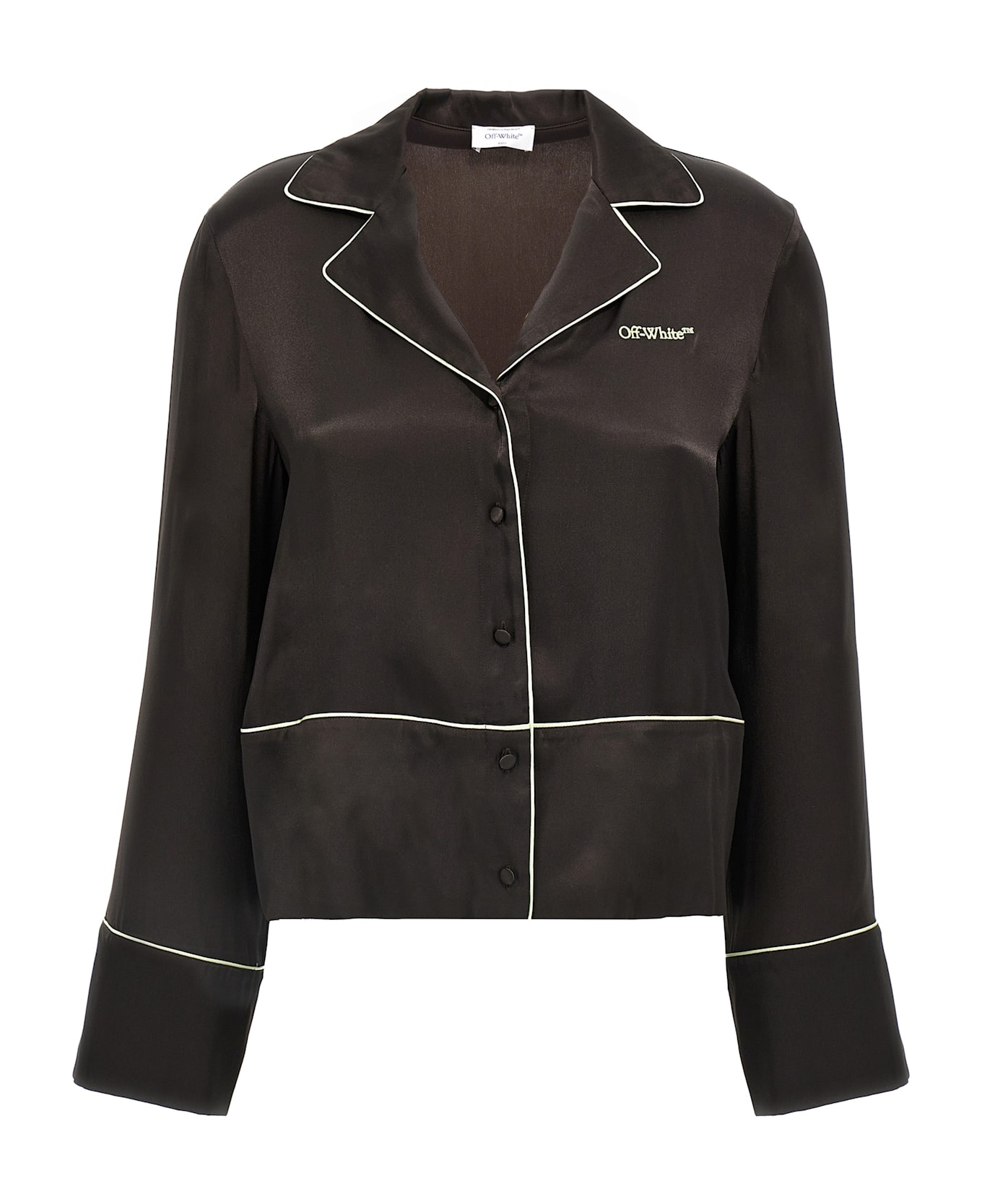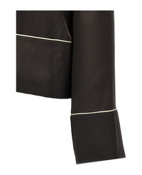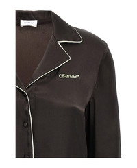 Acetate and silk blend shirt with contrasting details, pajama style, front logo embroidery, button closure, V-neck, long sleeves, pockets. Composition: 75% acetate, 25% silk Made in: Italy Color: Black Size and fit: - true to size fit Model number: OWGE028S25FAB0016G146G14