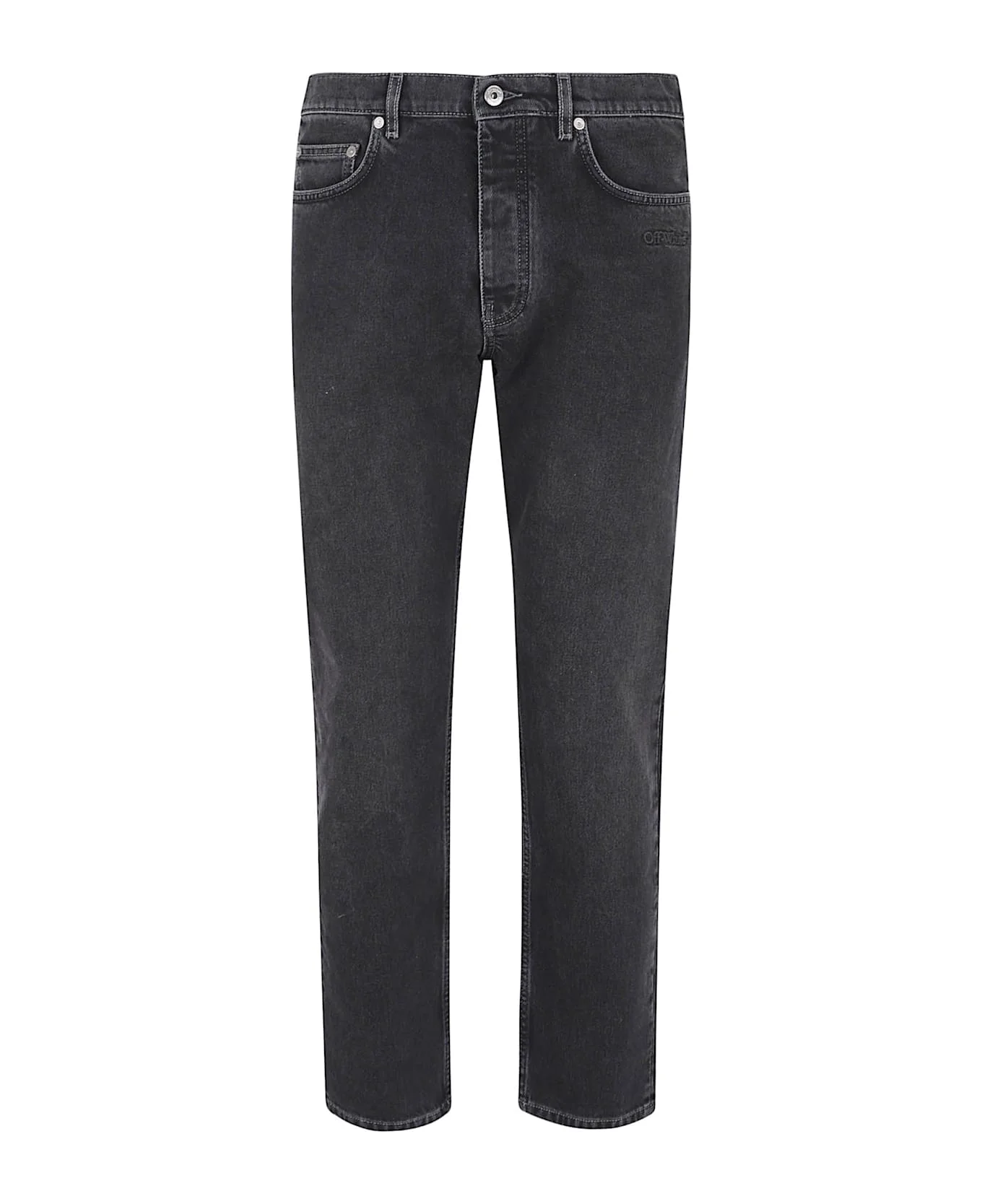 Black logo detail, five pockets, button and zip closure. Made in: Italy Color: Black Model number: OMYA175F25DEN0011310