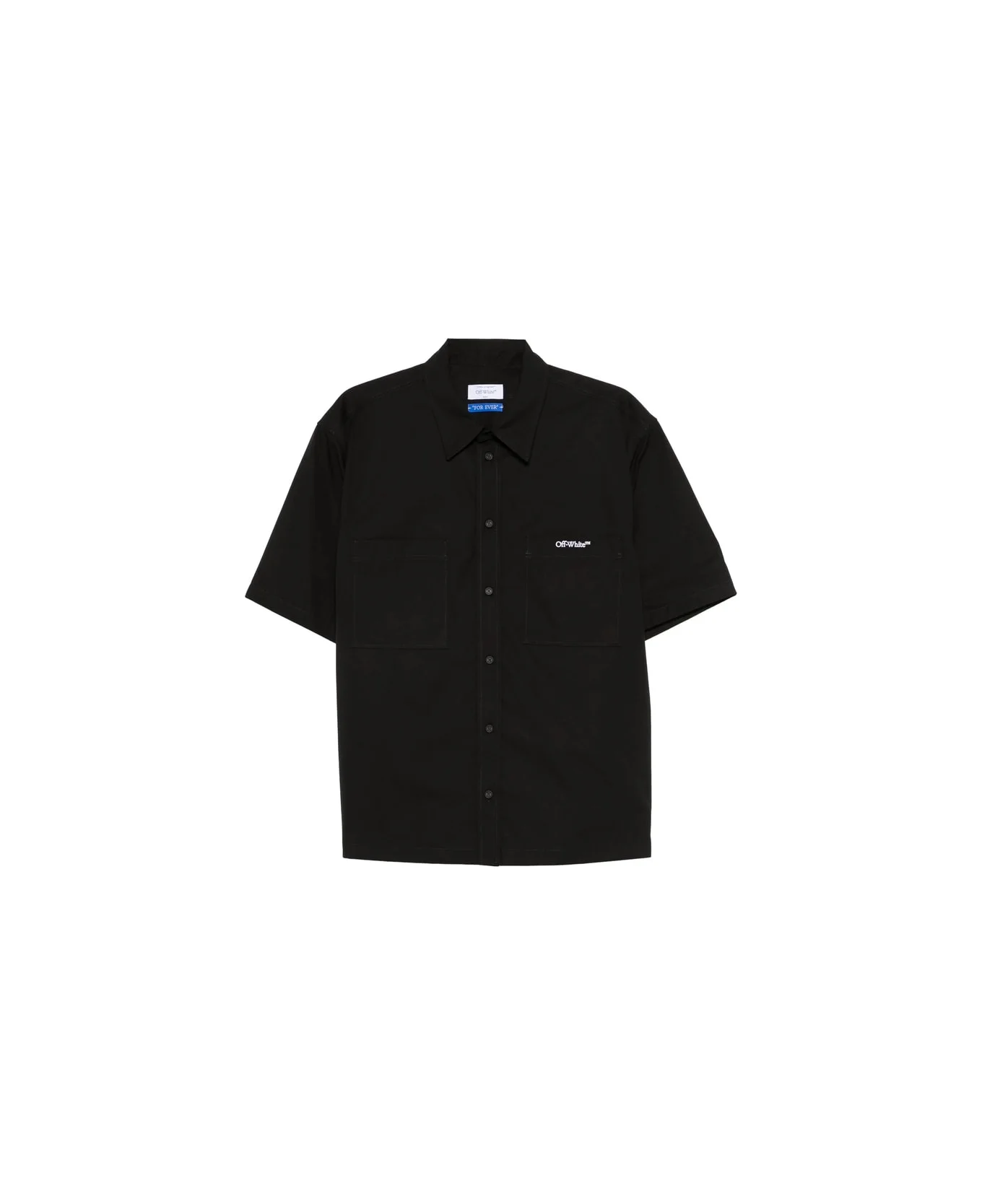 black point collar front button fastening short sleeves chest patch pocket Made in: Italy Color: BLACK Model number: OMGG002C99FAB002