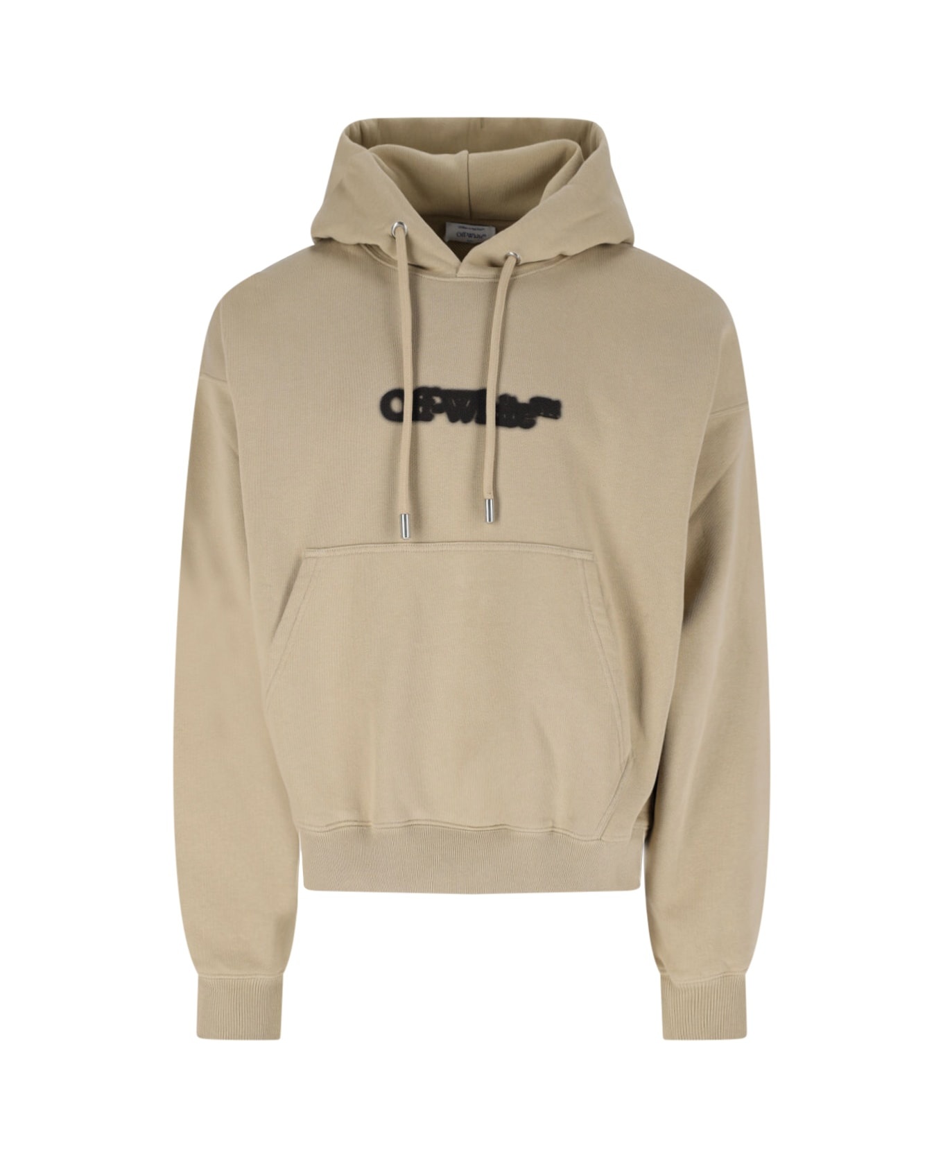 Off-White 'Spray Arrow' beige cotton hoodie with drawstring hood, black logo print on the chest, maxi front pocket, maxi black logo print at the back, ribbed trims, straight hem. Composition: 100% Cotton Made in: Portugal Color: Beige Size and fit: - vestibilita regolare Model number: OMBB085S25FLE00I6110