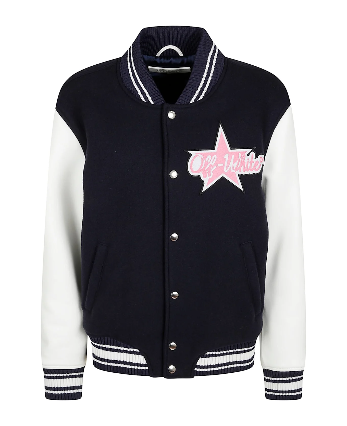 Navy blue Wool Ribbed trim Snap closure Long sleeves Made in: Romania Color: Blue Iris White Model number: OWEK006F25FAB0024801