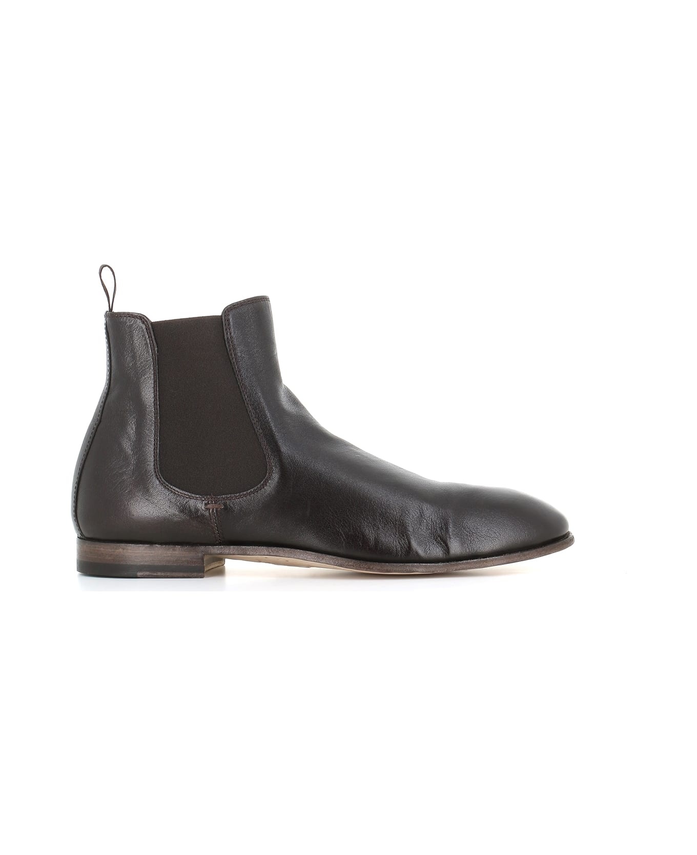 Dark brown men's soft leather Chelsea from Officine Creative, featuring by a worn look obtained from a washing treatment and by side elasticated pannels fastening. Flexible leather fund with rubber inserts. Lined interior. Bag processing. Heel: 2 cm Composition: Leather Made in: Italy Color: Brown Size and fit: - Pick half size down. Model number: SOLITUDE/004HORSE
