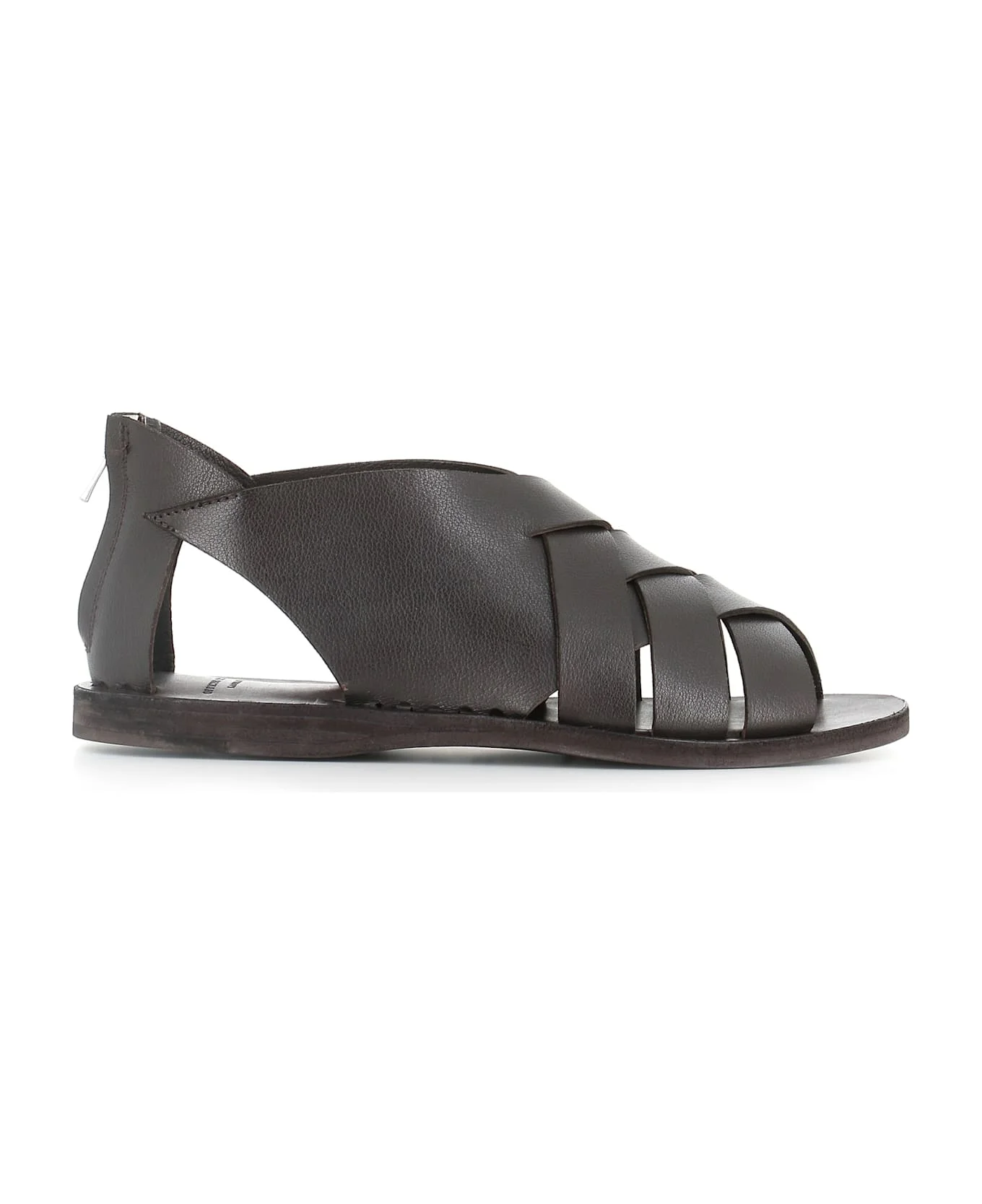 Dark brown leather woman Sandal by Officine Creative, featuring by a raw cut leather strips woven and a a back zip closure. Handcrafted 'threaded' artisan manufacturing. Leather sole. Lined interior. Heel: 1,5 cm Composition: Leather Made in: Italy Color: Brown Size and fit: - Fits true to size. Model number: ITACA/048IGNIS