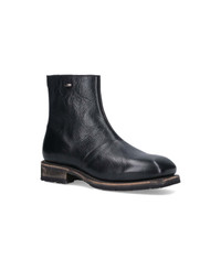 Our Legacy Motore ankle boots in black hammered leather with square toe, silver side logo tag, side zip closure, and used-effect rubber sole. Composition: 100% Leather Made in: Portugal Color: BLACK Model number: A4247EDBDEEPBLACKLEATHER