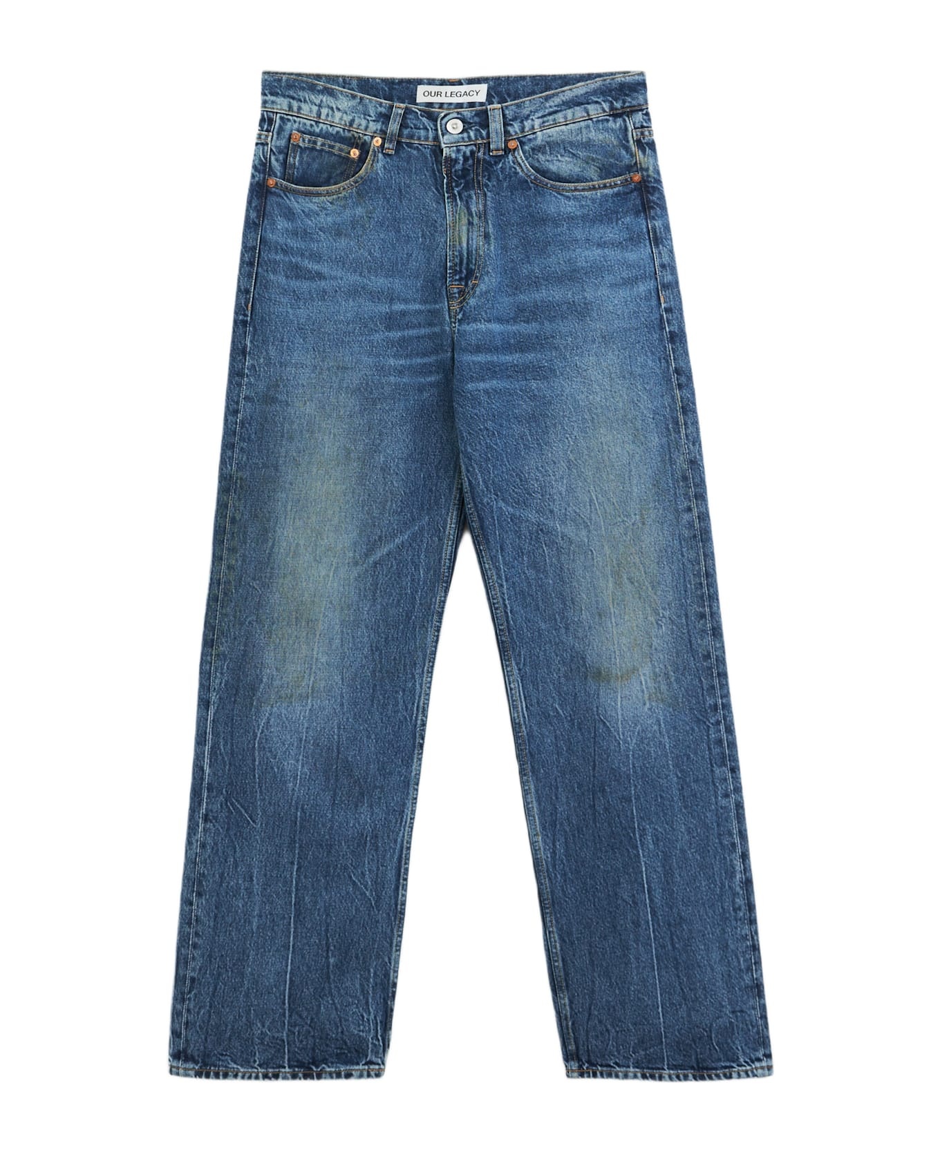 THIRD CUT Jeans in Cyan cotton, front pockets, vintage effect, pants loops , back pockets Color: Cyan Model number: M2255TCDDEADLINEWASH