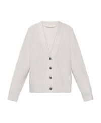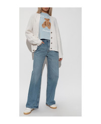 Experience refined comfort with the Palm Angels V-neck Cardigan. Crafted from an opulent knit blend, this cardigan features a distinctively textured, dense weave that ensures a soft and inviting feel. Its relaxed silhouette is elevated by a deep V-neckline and five front buttons, meticulously cast in antiqued silver and engraved with a gothic Composition: 40% Wool 40% Wool 30% Viscose 30% Viscose 20% Polyamide 20% Polyamide 10% Cashmere 10% Cashmere Made in: Turkey Color: Off White Model number: PWHB045F25KNI0010330